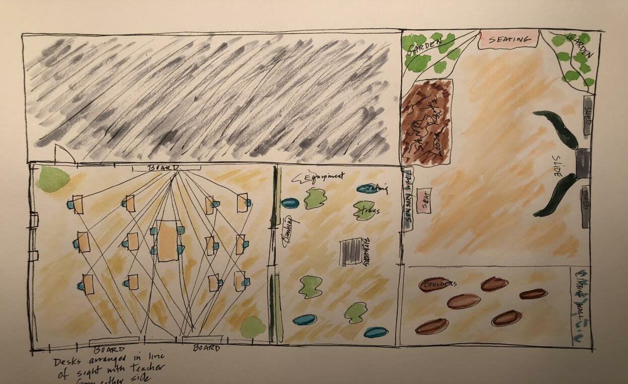 The design concept incorporated design elements that were found in the studies to be the most effective in improving executive functions significantly and to a lesser extent achievement scores. In several studies, students were surveyed about their satisfaction regarding certain elements such as plants in the classroom or challenges in the playscape and it was shown that students derived pleasure from these design elements but they overwhelmingly liked “lessons outdoors.”