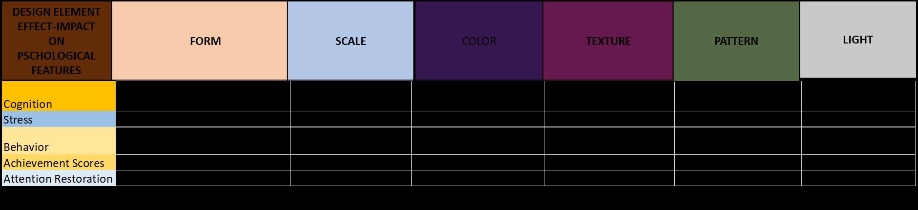 My intent was to research those design elements that helped best to achieve attention restoration, improved cognition, and subsequently, improved achievement scores.