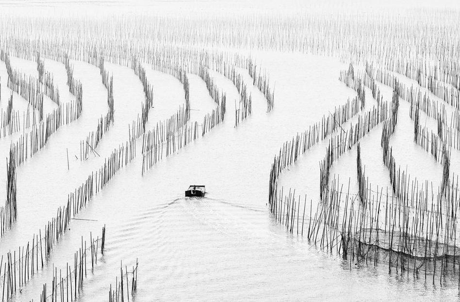 During harvest, farmers dry the seaweed in nets hanging from bamboo poles stuck in the mud. At high tide, these mudflats are flooded, creating a unique landscape. Seaweed farming has grown rapidly in recent years and has become a pillar of the local marine economy in Xiapu.