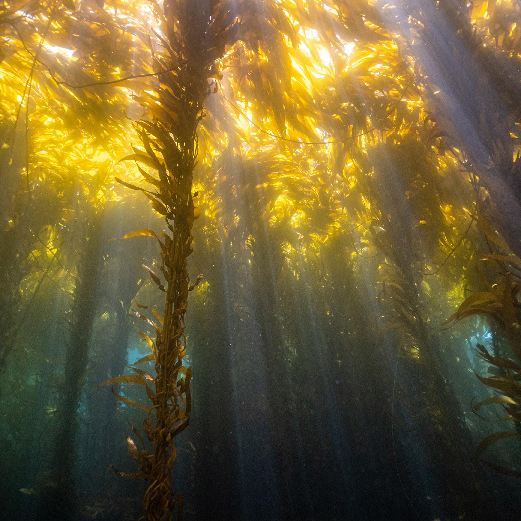 Macroalgal forests, such as Kelp forests (brown algae), grow in shallow waters where sunlight can penetrate to the ocean floor. They can reach heights up to 45m. They are home to a wide variety of marine life, including fish, invertebrates, molluscs, crustaceans and other organisms. These ecosystems provide shelter, food and breeding grounds for many species. There is a theory that the first humans arrived from Asia to the Americas through the Kelp forests, which provided food and resources for their migration.