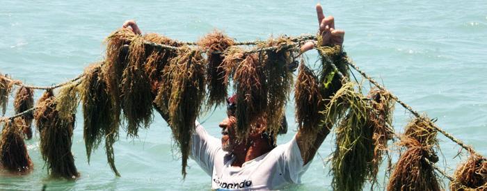 Mulheres de Corpo e Algas (“Women of Body and Algae”) is a project carried out by fishermen’s wives from the community of Barrinha, in the municipality of Icapuí - Ceará, Brazil. They have been cultivating algae for over 12 years and producing food and cosmetics such as soaps, moisturizers and exfoliants. Seaweed also goes into snacks at daycare centers and public schools in Icapuí, being used to produce mousse and gelatin. The project is an economic and social empowerment of women and the community, who previously only sold seaweed at low cost to international cosmetics companies. It was elected by the Ministry of Agriculture as one of the 25 best practices in family farming in Brazil.
