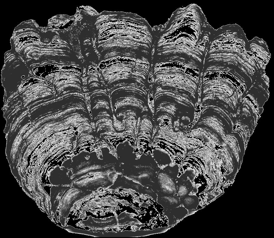 Marine sedimentary fossil, formed by the intercalation of films of cyanobacteria and calcium carbonate, dating back more than 3 billion years.