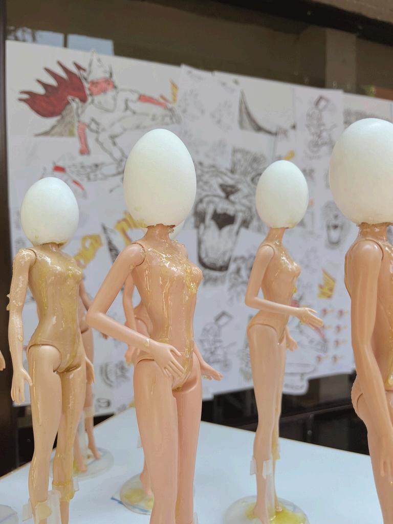 Técnica: Barbies intervenidas con resina y cascarones de huevo