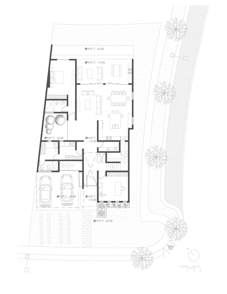 The main challenge for this house was to create spaces that could transform with time and adapt as the family keeps growing. It is located in a gated community called "Las Riberas" in the north of Hermosillo, Sonora, Mexico. Casa Arena is situated on a 560 square meters land, and has a total of 540 square meters of construction. On the ground floor there are two spaces meant to be a gym and office, but could also work as bedrooms. On the second floor, it has a total of 3 bedrooms, each of them with their own walk-in closet and full bathroom. The house also includes the main living space, kitchen, walk-in pantry, powder room, court yard and laundry room.
