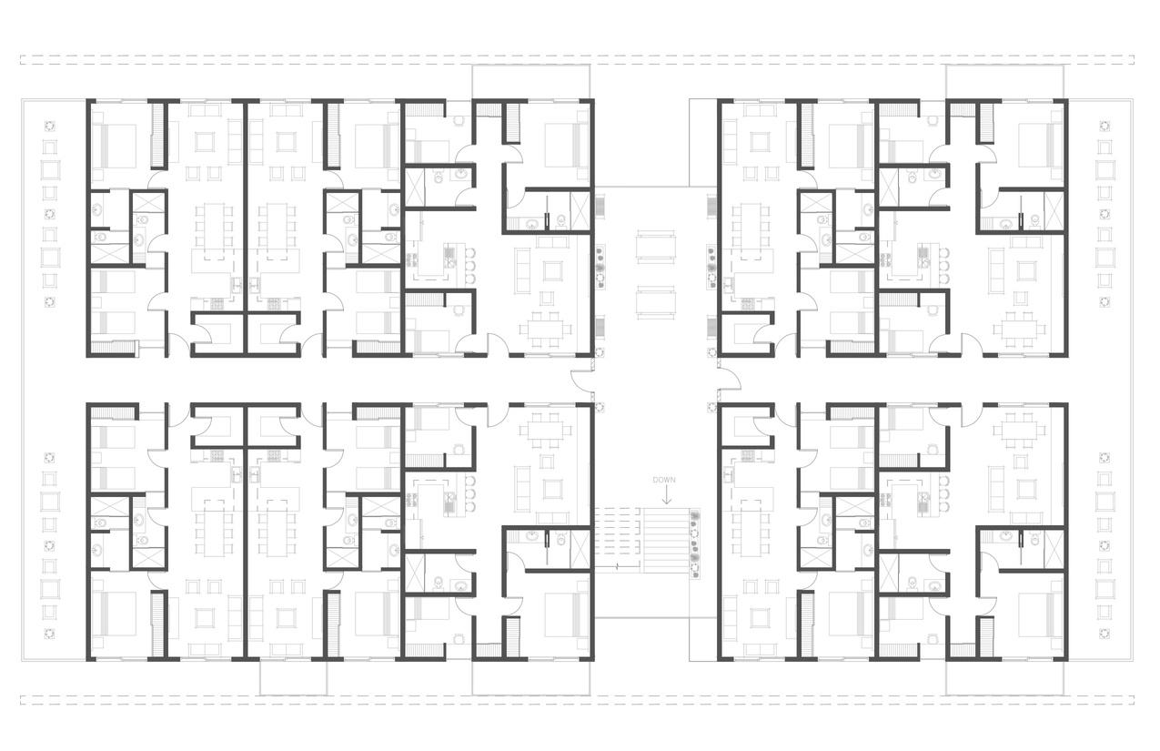 Proyecto Bodegas is a project made for the course called Collective Housing, Developed during October-November of 2022. Its' purpose is to provide local workers with a stable and safe home to live in, while being accessible to their economic needs and allowing them to have multiple services within walking distance.