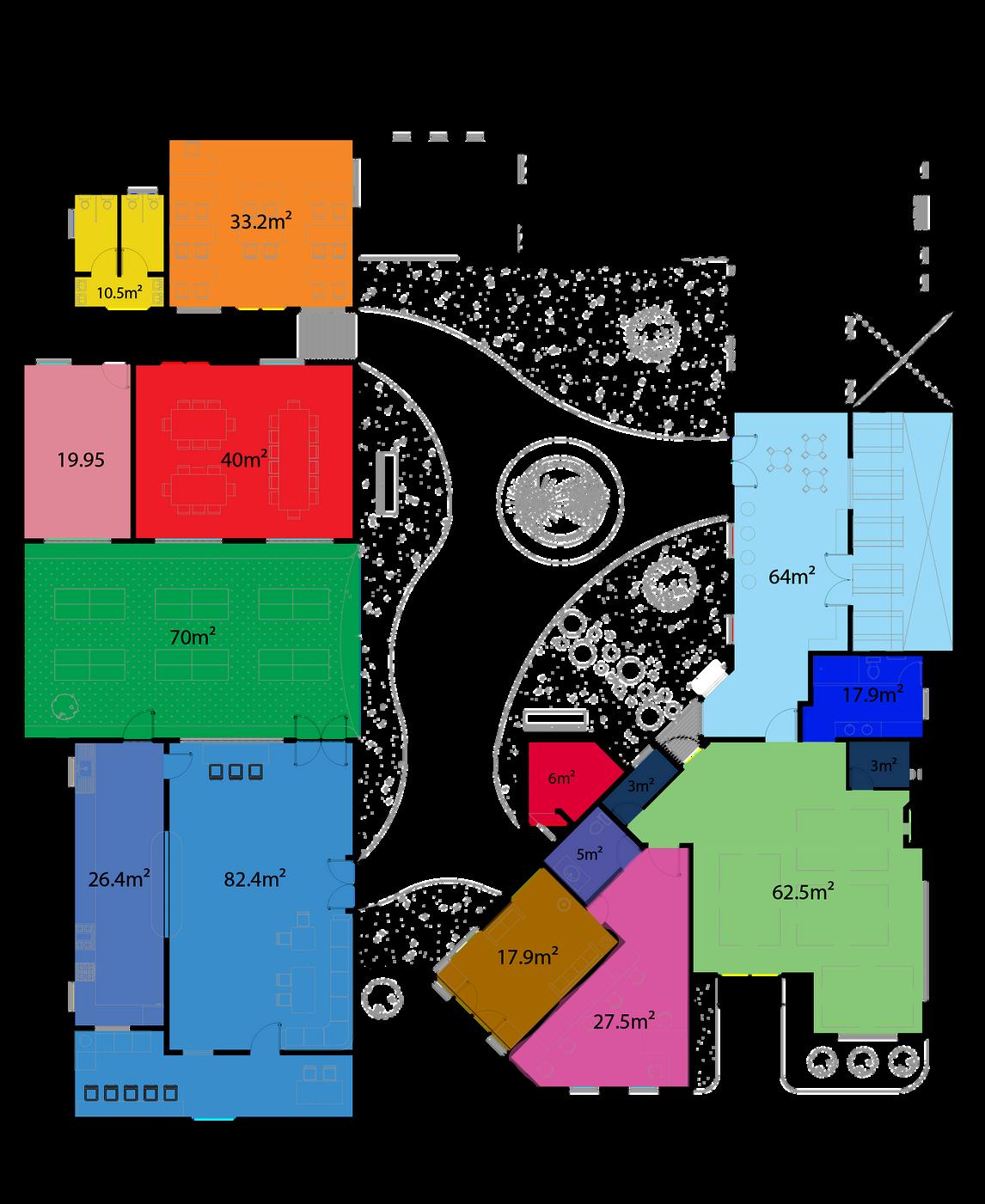 This project is meant to be located inside a polygon which includes 4 buildings in total, and also some public spaces like a skate-park, dog park, and some sports courts.