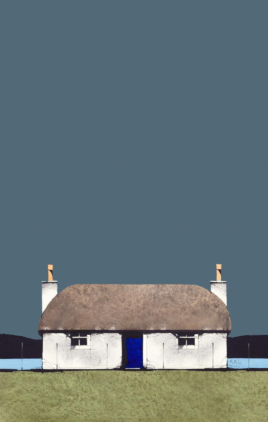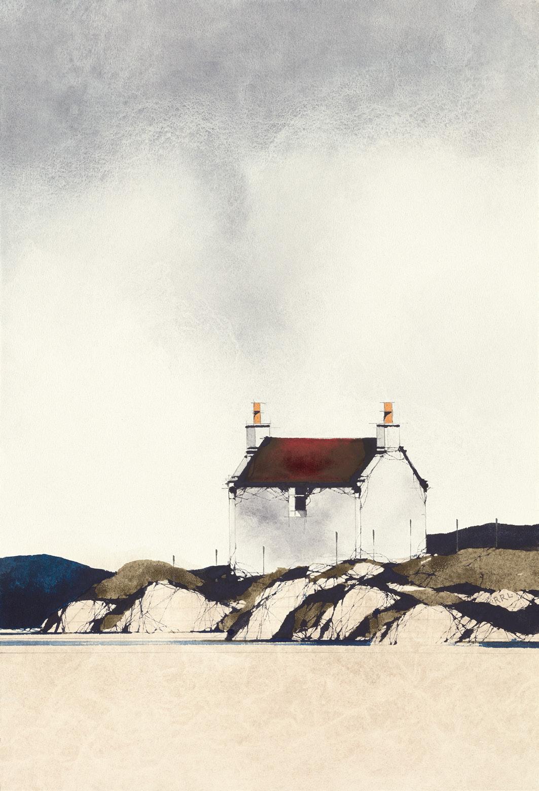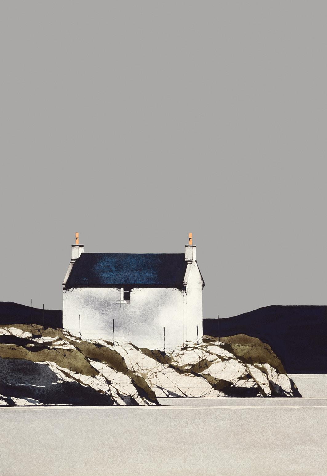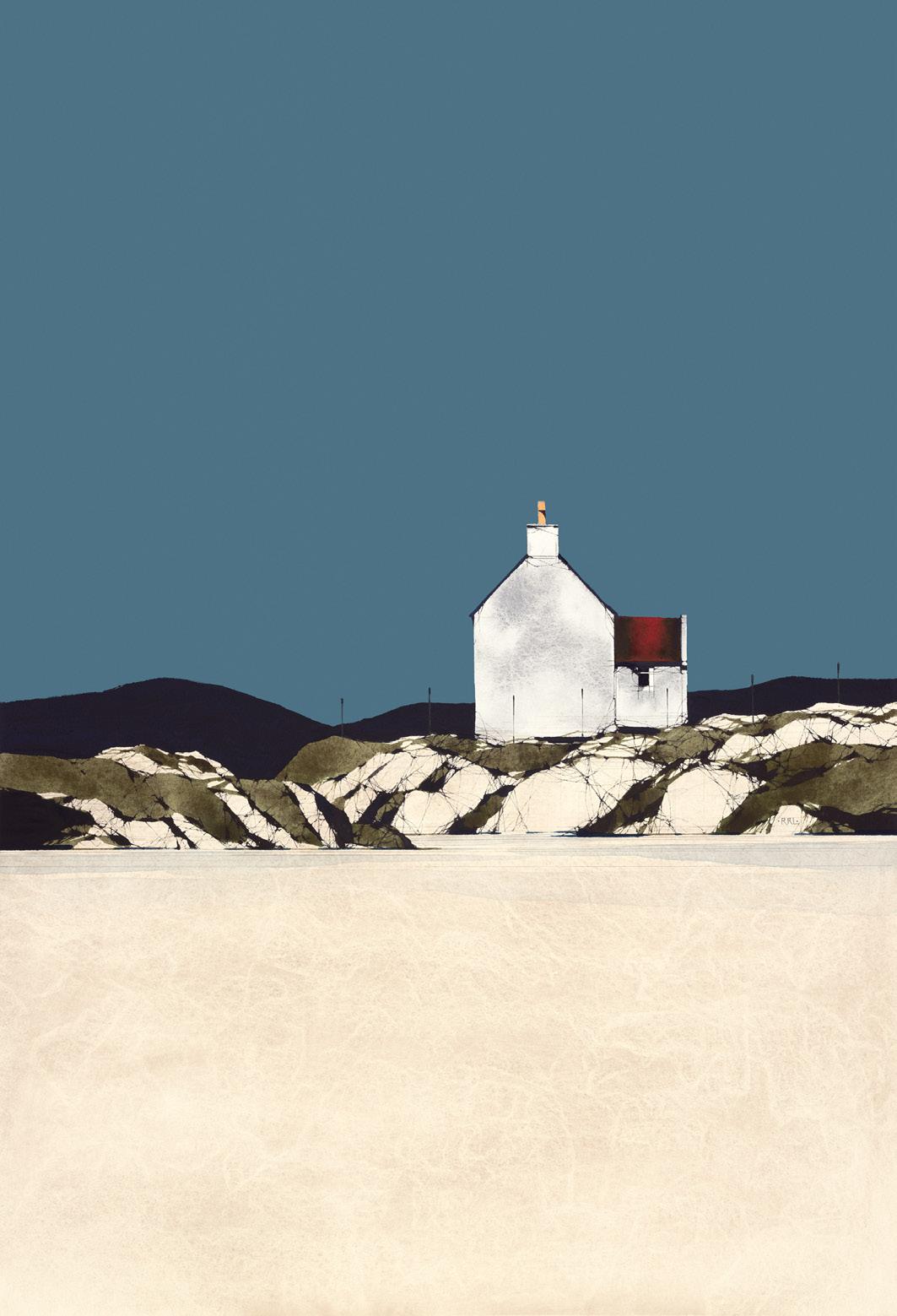 “Through continually studying and painting my croftscapes, I strive to capture a perfect vision of how it feels to actually be there - that immense sense of space and isolation. At times I’ll paint my memory of a place, exaggerating its remoteness to convey the feeling I experienced standing there, surrounded by majestic emptiness.”