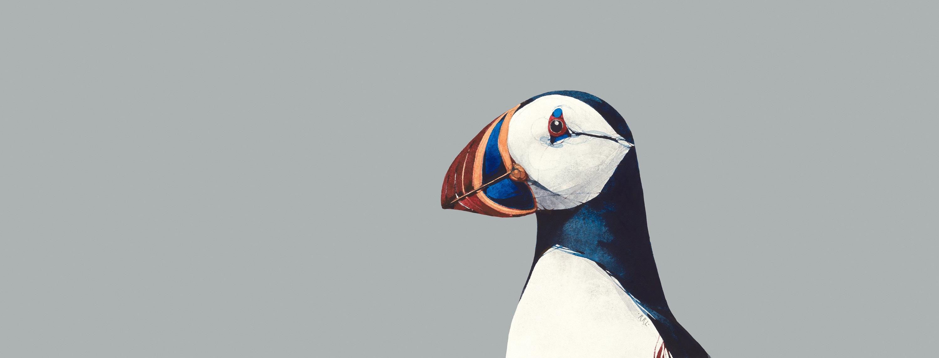“In keeping with my collection of paintings inspired by St Kilda, I’ve also created a series featuring puffins. I’ve had a keen interest in birds since childhood, and puffins have remained a popular subject in my work over the years. I love their bright colours and lively characters - and with St Kilda being home to the UK’s largest Atlantic puffin colony and a major seabird sanctuary, I simply couldn’t leave them out.”