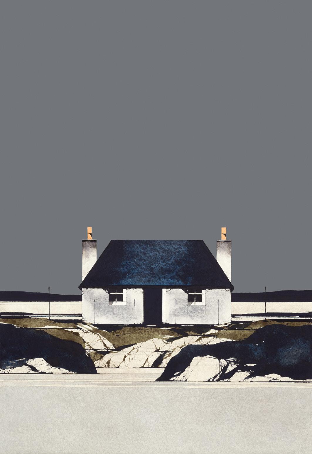 “Through continually studying and painting my croftscapes, I strive to capture a perfect vision of how it feels to actually be there - that immense sense of space and isolation. At times I’ll paint my memory of a place, exaggerating its remoteness to convey the feeling I experienced standing there, surrounded by majestic emptiness.”