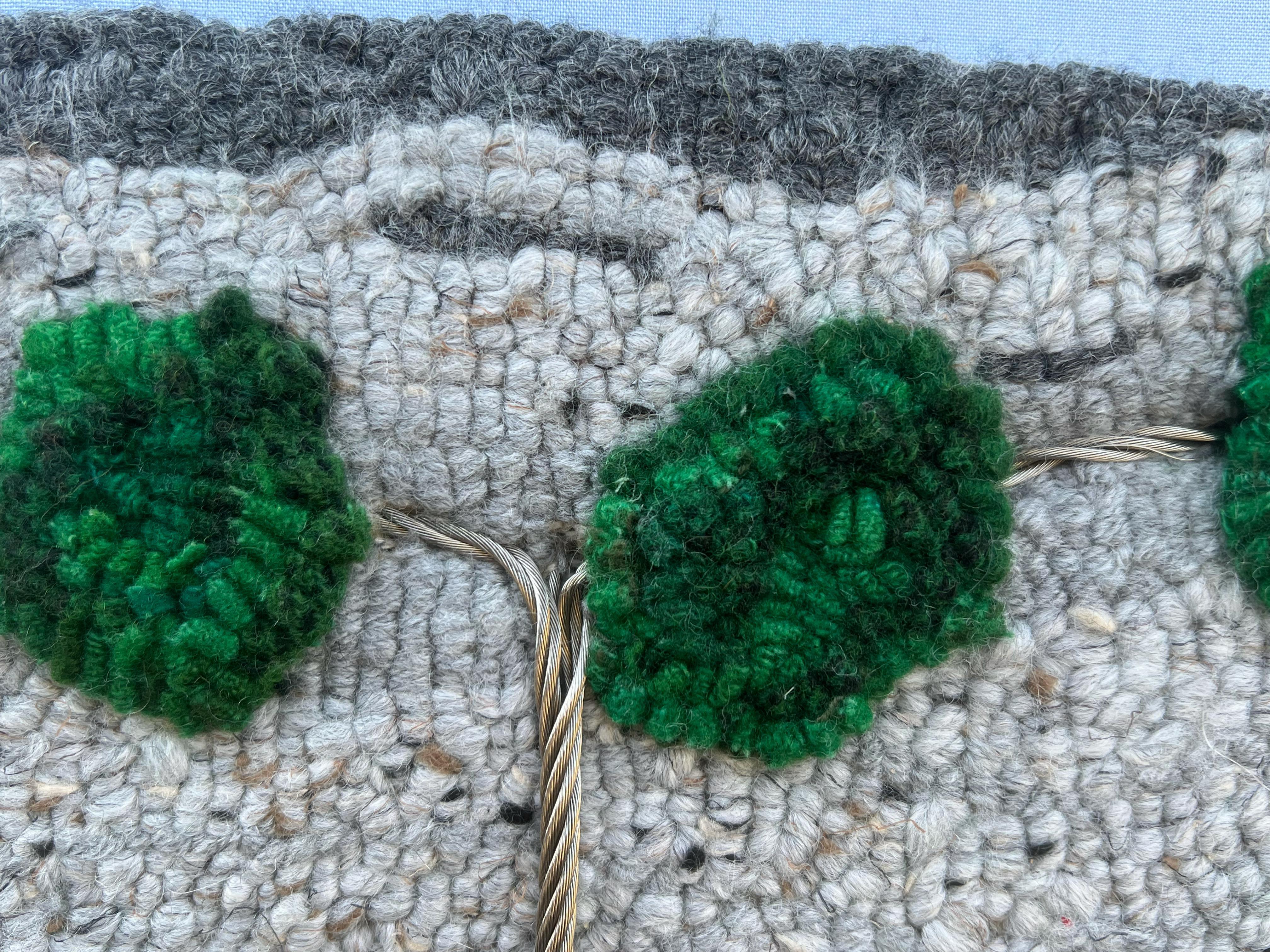 rug hooking, sculpted loops, upholstery fabric, wire, crochet