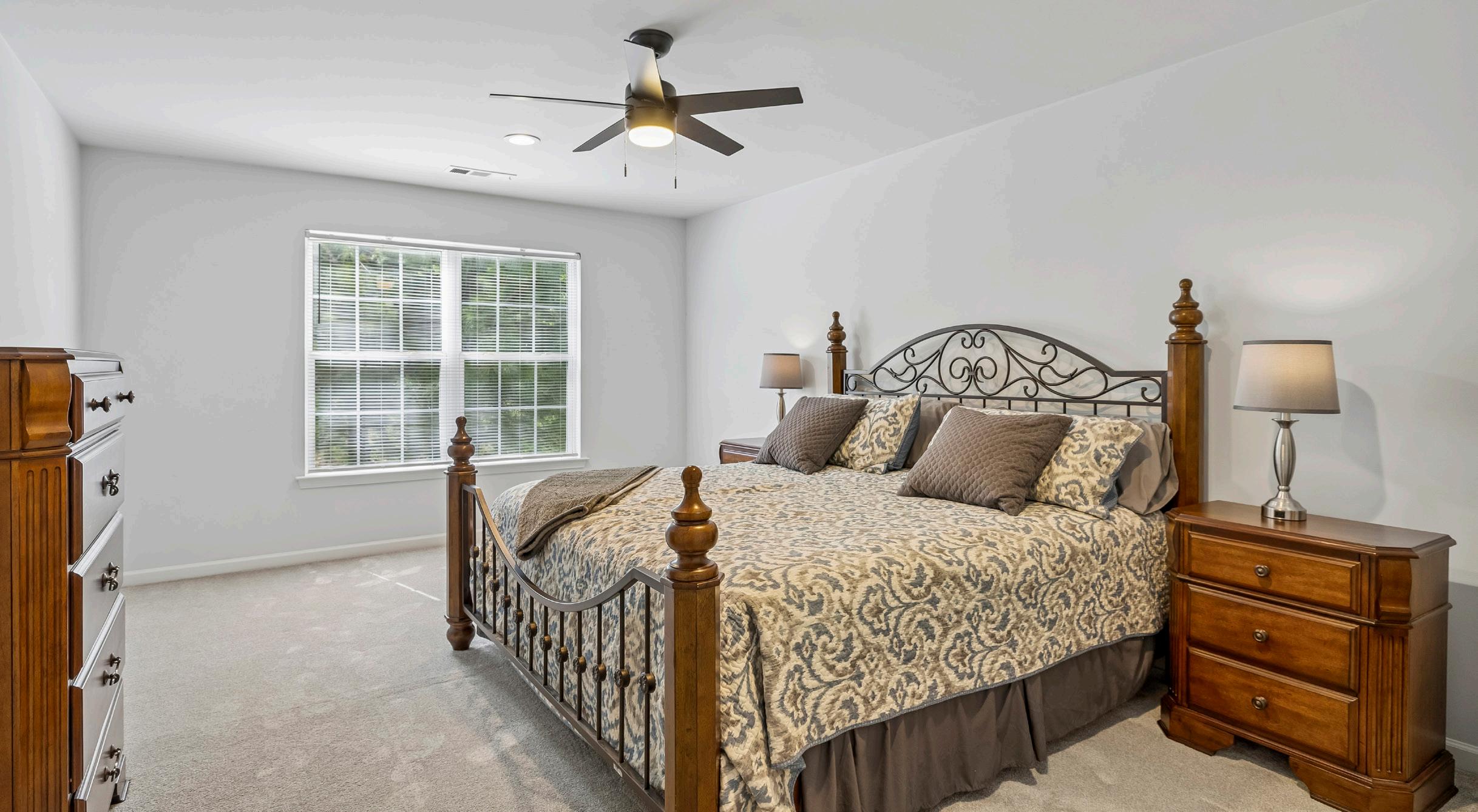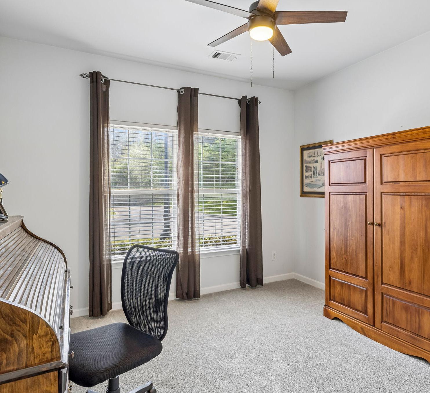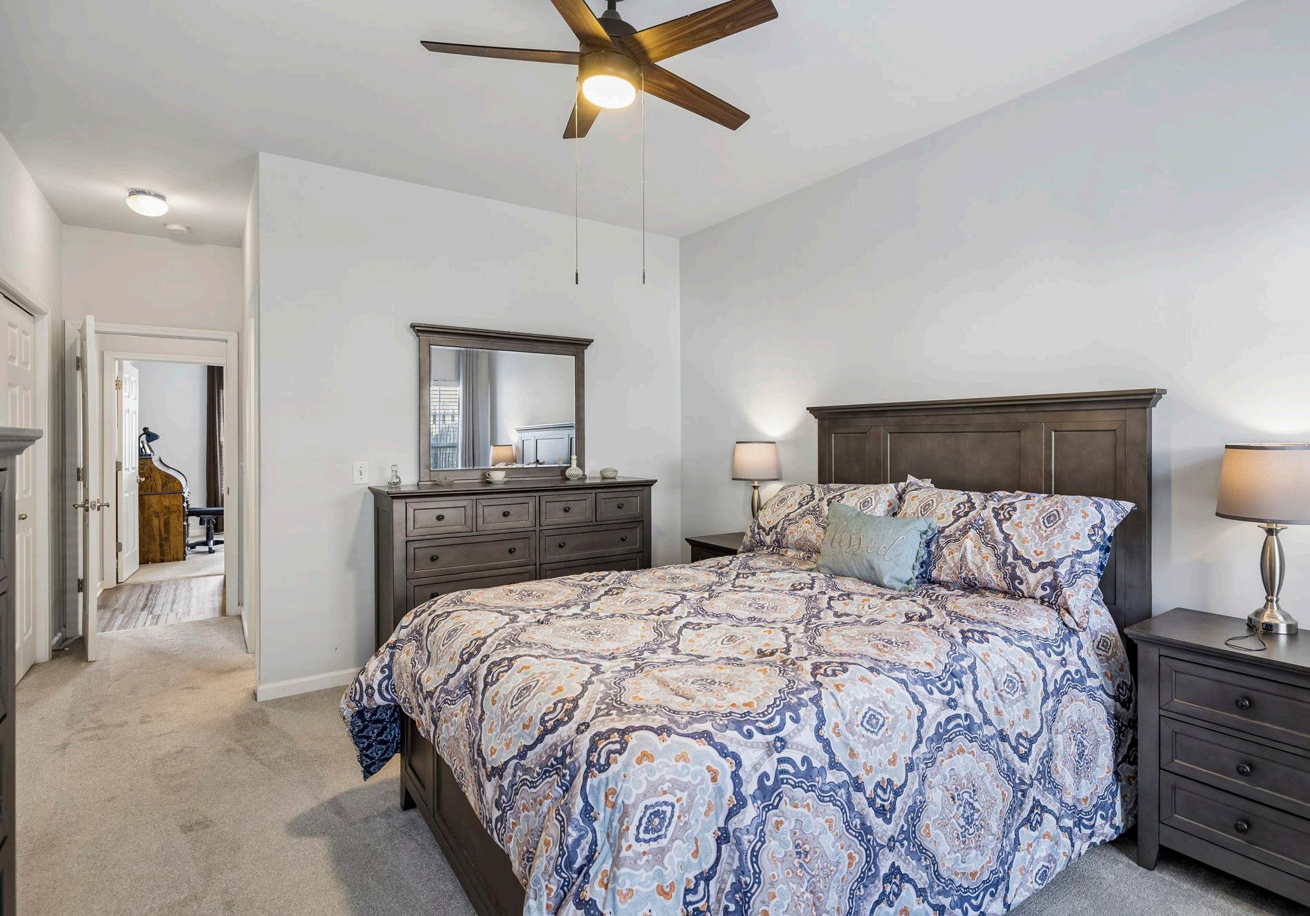 • New carpet, dual closets, and new ceiling fan
