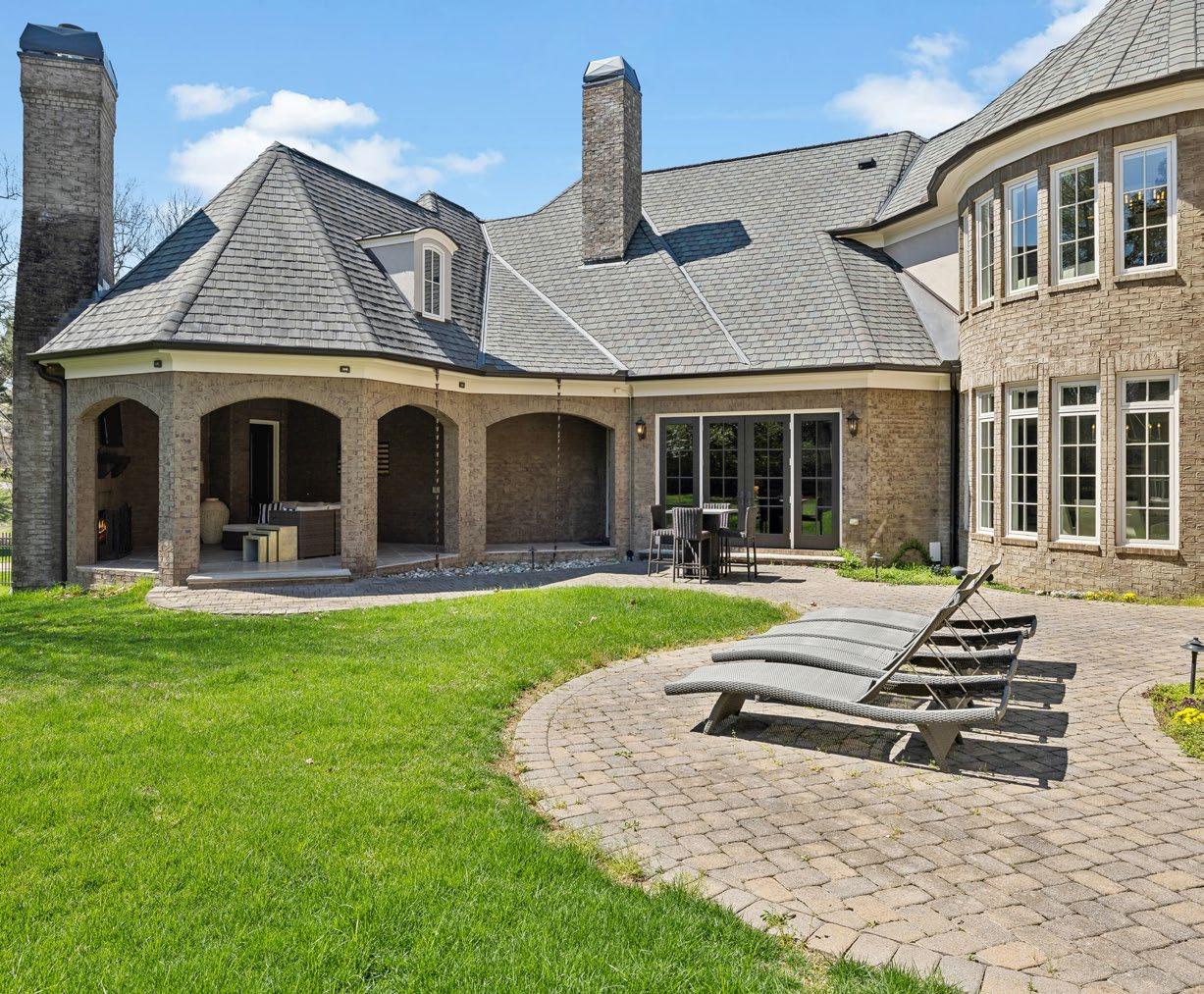 Step outside to the Uncovered Patio, where mature landscaping surrounds you, creating a serene retreat. The cobblestone paver patio, with vibrant flower beds, is the perfect place to relax, while decorative rain chain downspouts add a touch of style. A built-in landscape audio system with four speakers and a subwoofer brings music to life, and landscape lighting casts a soft glow as the evening falls. Several seating areas invite you to unwind and enjoy the peaceful beauty of your surroundings.