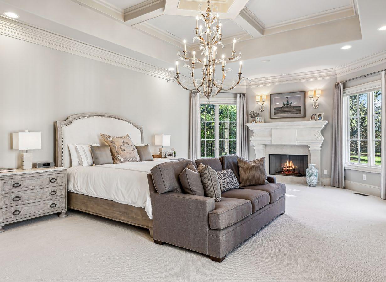 Technology meets ease with bedside touch and remote controls for the exterior lighting, allowing you to set the perfect ambiance without leaving the bed. Above, a coffered ceiling with beams and a stunning chandelier completes the room’s refined character. This Primary Suite is more than just a bedroom—it’s your personal sanctuary.