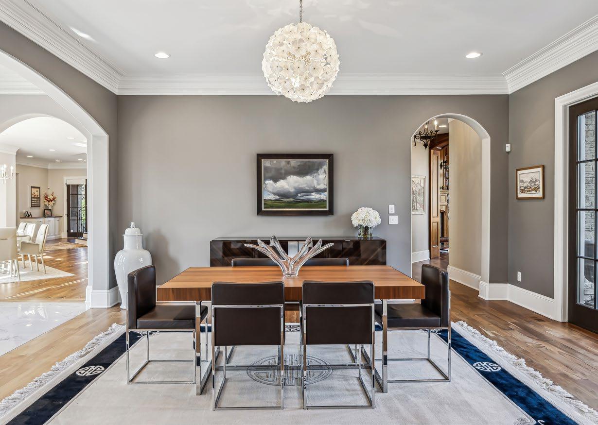 Entertain in style in the elegant Formal Dining Room—an ideal setting for intimate dinner parties or festive holiday gatherings. Perfectly positioned just off the Grand Foyer and opposite the Formal Living Room, this sophisticated space is graced by a stunning floral glass chandelier that adds a touch of refined charm. French doors offer seamless access to both the front porch and rear courtyard, creating a graceful flow for indoor-outdoor entertaining.