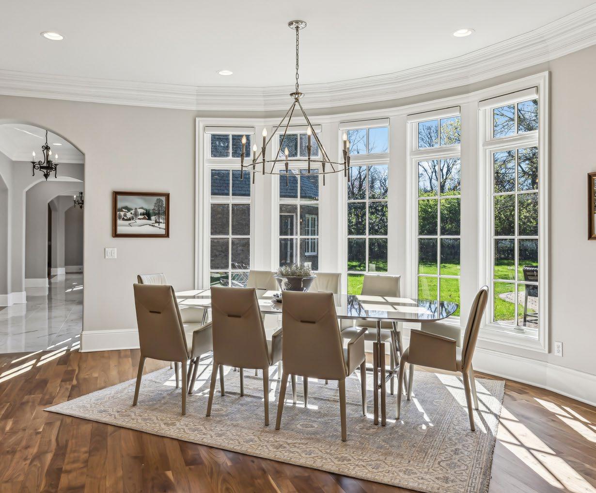 The Breakfast Room, seamlessly connected to the Kitchen, offers a bright and inviting space to start your day. Overlooking the expansive courtyard, it features a beautiful bay window with transom accents that takes advantage of the natural light. A stylish candelabra-style light fixture adds a touch of elegance, creating the perfect setting for casual meals or morning coffee in a sunlit, serene atmosphere.