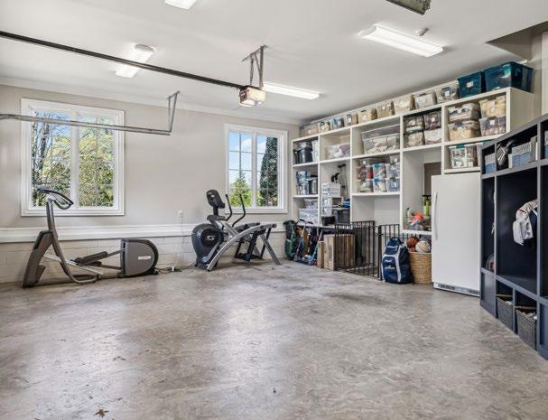 The expansive 4-car garage offers abundant space to accommodate family vehicles, bicycles, lawn equipment, and much more. Key features include insulated garage doors for enhanced temperature control, a convenient pedestrian door for easy access, and custom-built storage shelves designed for durability. Specialized sport equipment cabinets keep your gear organized, while there’s ample room for a refrigerator/freezer. A gated access door leads to the crawlspace, offering additional storage and housing the home’s AV equipment, further maximizing the space’s functionality.