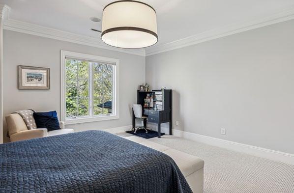 Unwind by the warm glow of the fireplace, framed in stone and accented by soft sconce lighting—the perfect setting for intimate moments or losing yourself in a favorite book. Every detail speaks to comfort and sophistication, from the plush 100% wool Berber carpet with memory foam padding underfoot to the Hunter Douglas automated blackout shades that ensure restful nights.