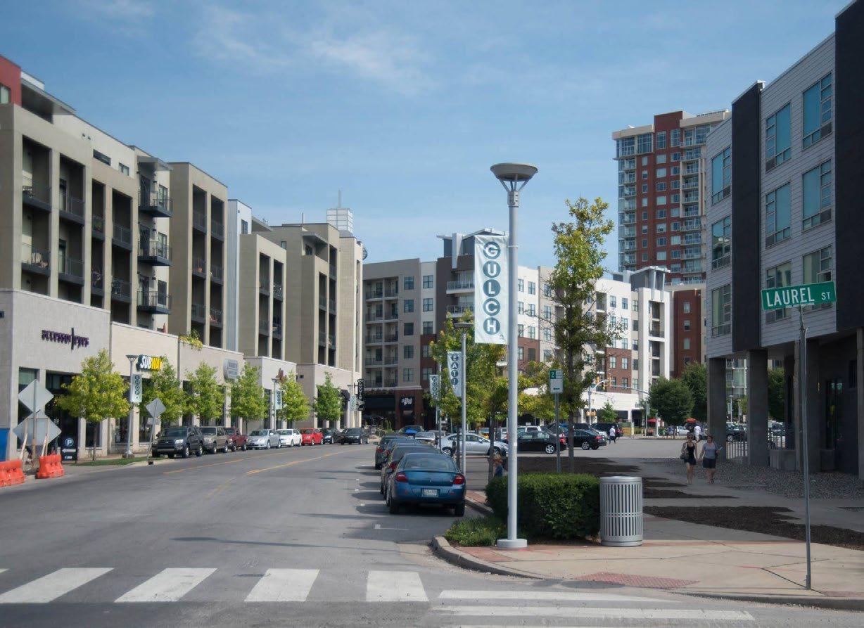 The Gulch is a trendy, upscale neighborhood in Nashville, Tennessee, located south of downtown, known for its renovated warehouses, upscale restaurants, eclectic boutiques, and vibrant nightlife, making it a popular destination for tourists and locals.