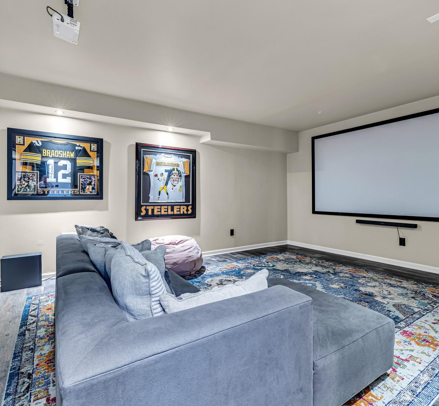 Theater Room with Projector and Gallery-Style Lighting. This Would Also Work Well as a Recording Studio.