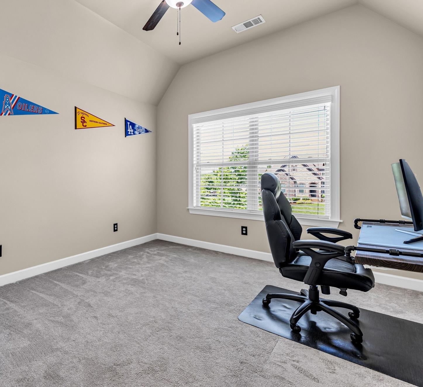 The large Bonus Room is perfect for entertainment! The size of this space ensures room for a future poker table or billiards table and still have plenty of space for a couch and entertainment center. Highlights include a vaulted ceiling, recessed lighting, stylish ceiling fan, and 2” blinds.