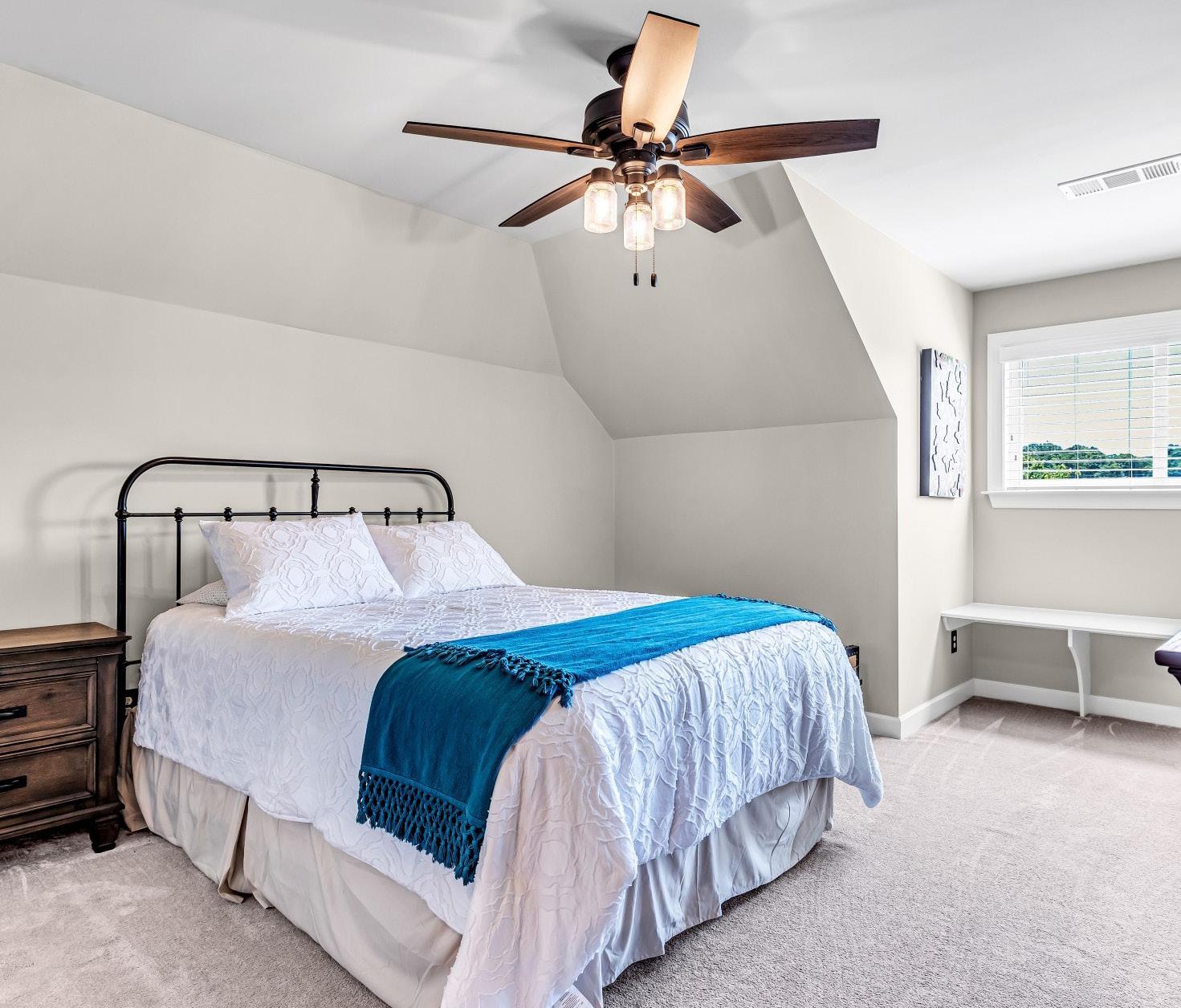 Bedroom #4 with Built-In Desk Area (Perfect For Homework Station), Ceiling Fan, Vaulted Ceiling and Double Door Closet