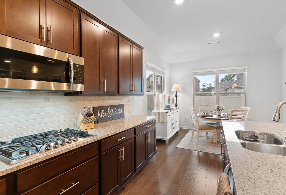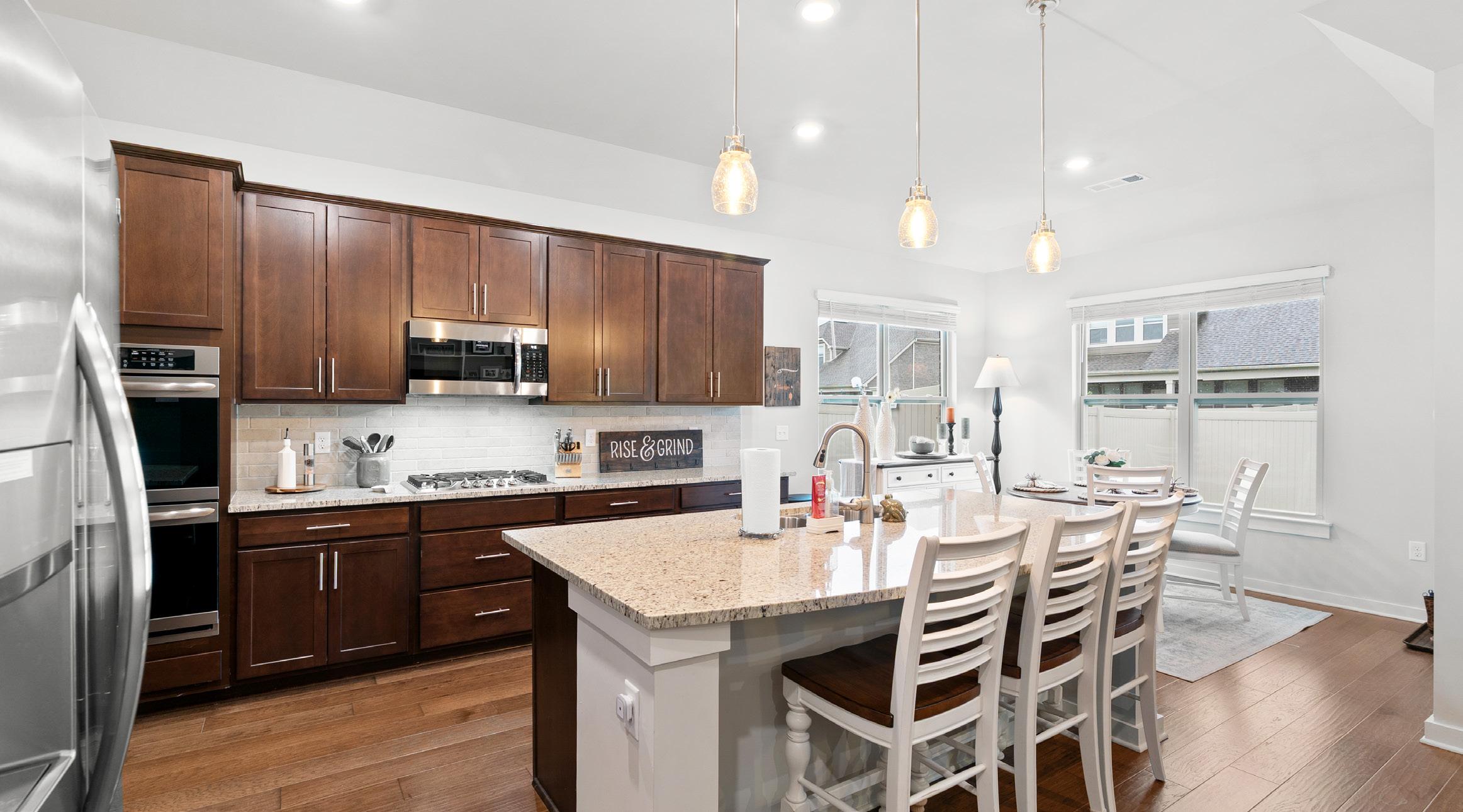 Kitchen - Granite Countertops, Bar Seating, Pendant Lighting, Subway Tile Backsplash, 5-Burner Gas Cooktop, Double Ovens, Deep Drawers for Pots and Pans