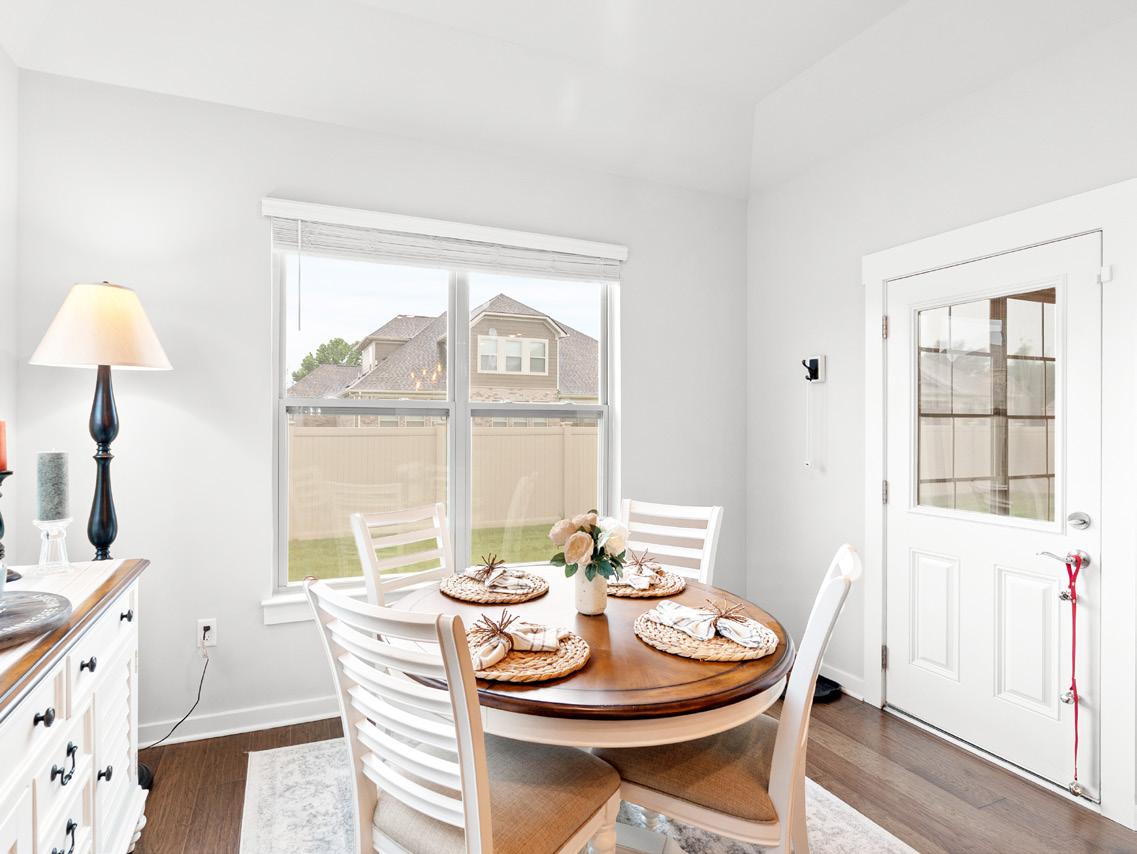The cheerful Breakfast Room is bathed in natural light from a large double window fitted with blinds. It offers a pleasant view of the backyard and opens to the welcoming sunroom through a convenient door. From there, step out onto the covered patio, seamlessly connecting indoor comfort with outdoor living.