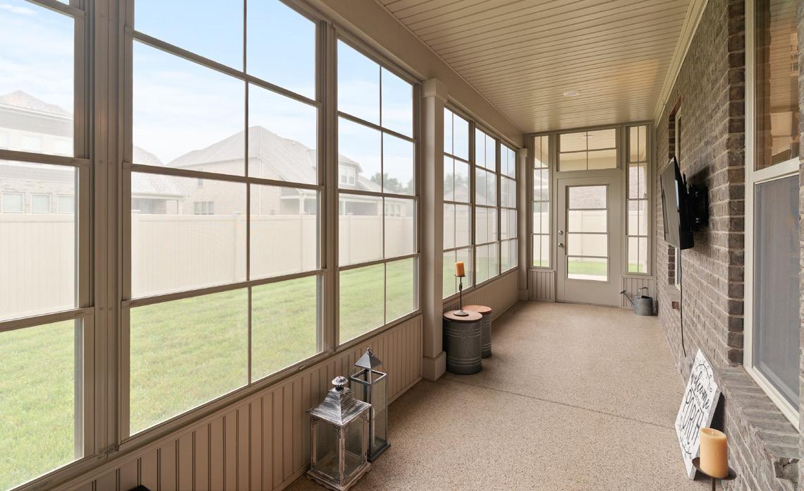 This home features a delightful sunroom area designed for versatile enjoyment. It boasts a charming shiplap ceiling, epoxy flooring, and a full wall of windows. These windows are equipped with screens and can be fully opened, transforming the space into a breezy screened-in area perfect for enjoying the fresh air. For entertainment, a TV mount is conveniently installed within the sunroom.