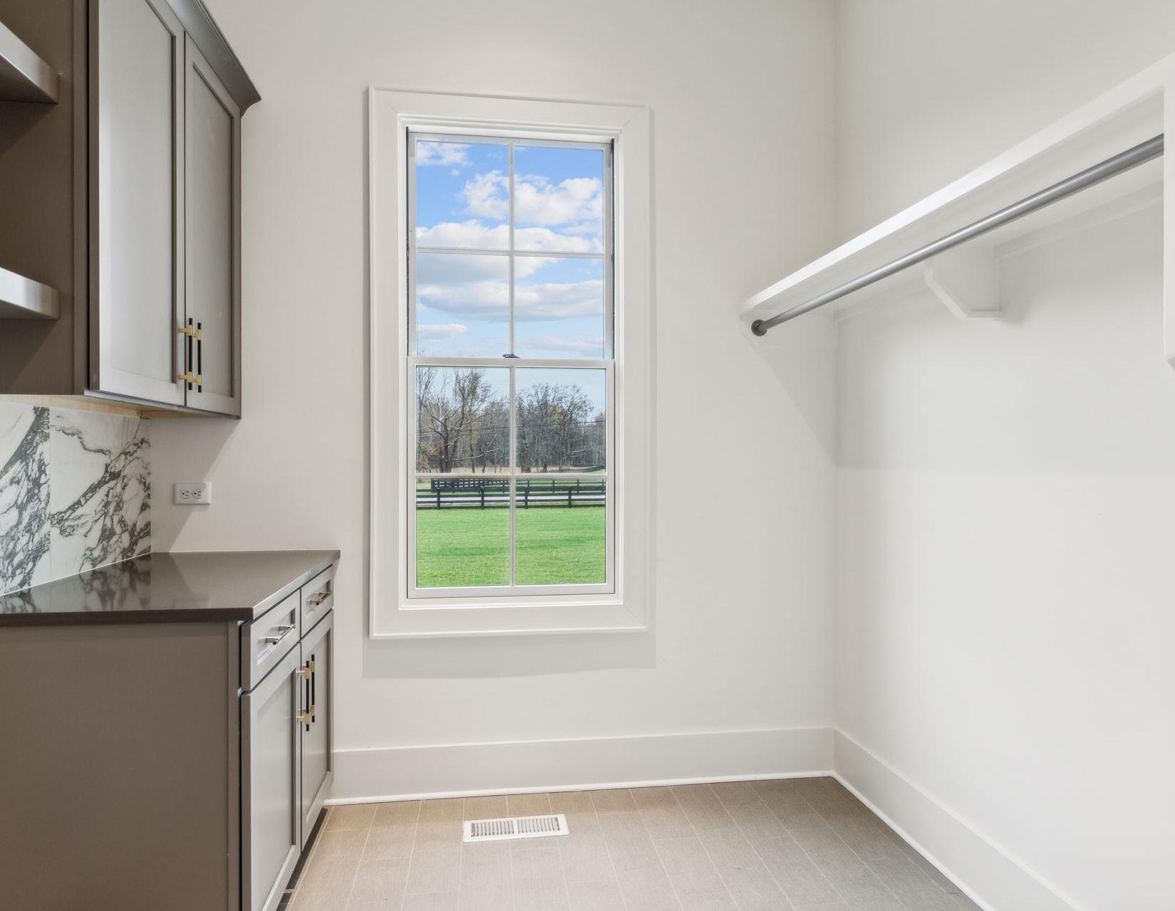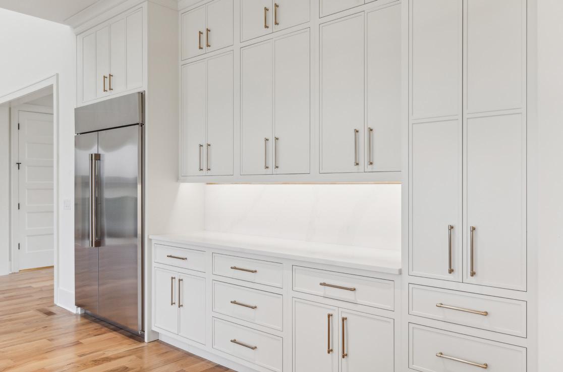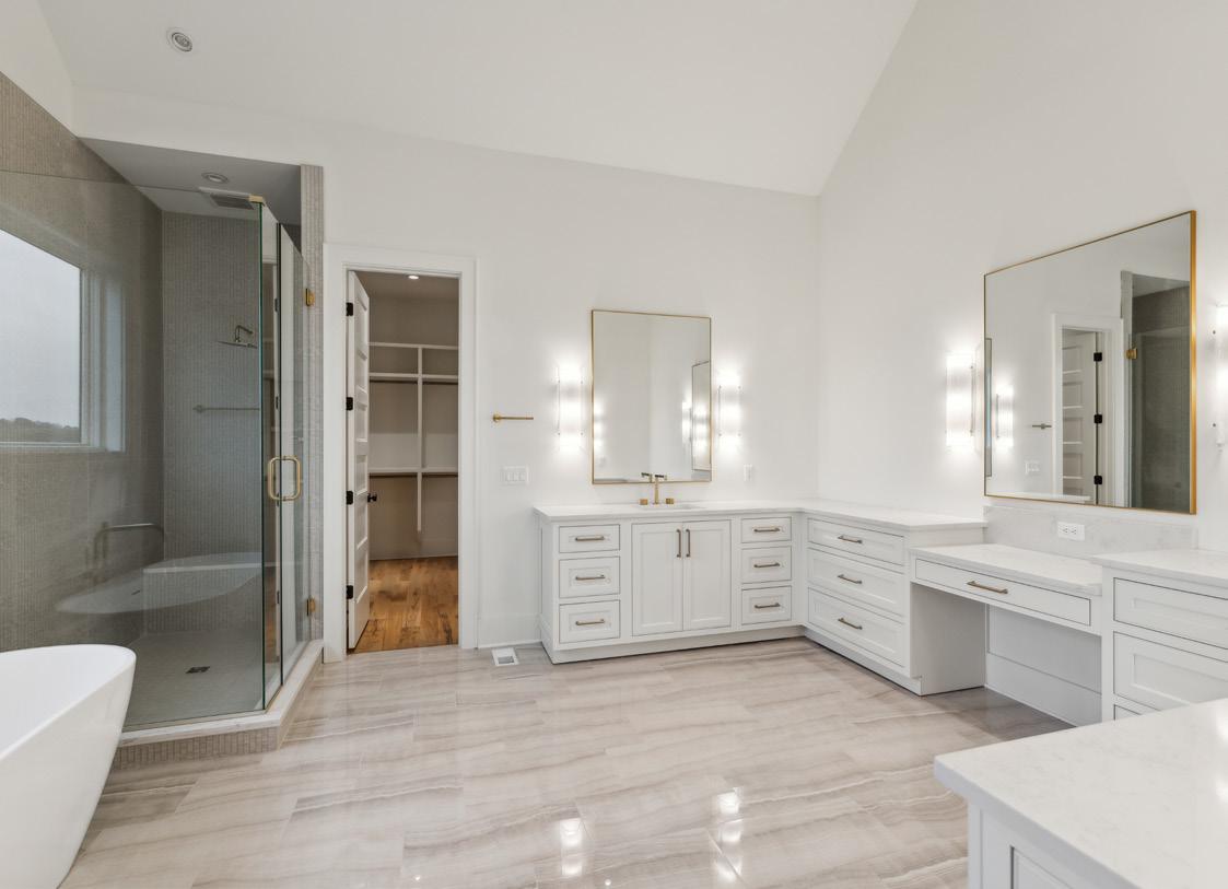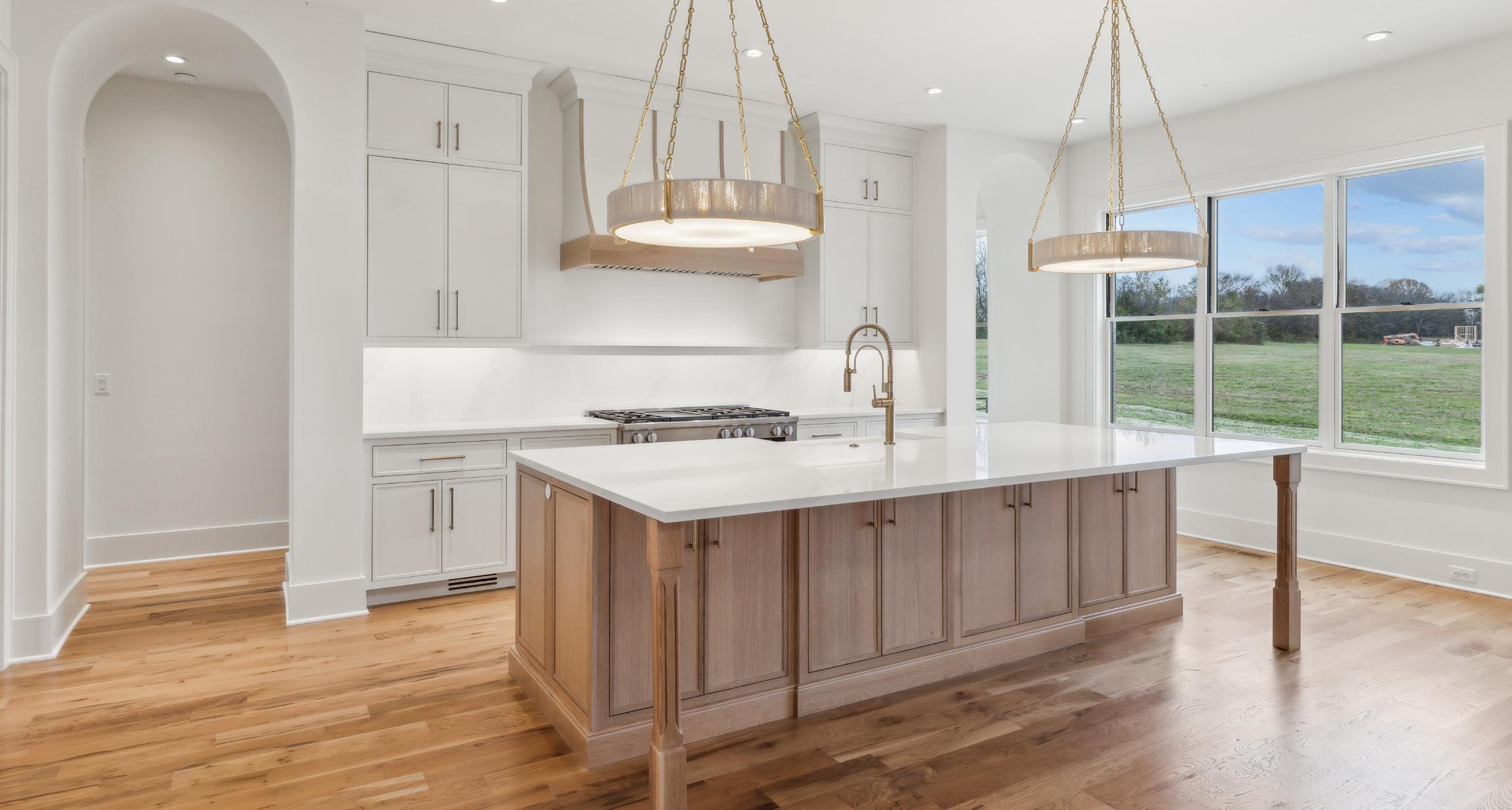 Experience luxury and functionality in this well designed kitchen. This Kitchen’s open floor plan provides open views into the Family Room and out to the Covered Porch. With features such as quartz countertops and backsplash, satin brass handles on the cabinetry, luxe gold faucet, an expansive center island with extra storage, and stainless steel appliances, this Kitchen will be sure to inspire all of your culinary endeavors.