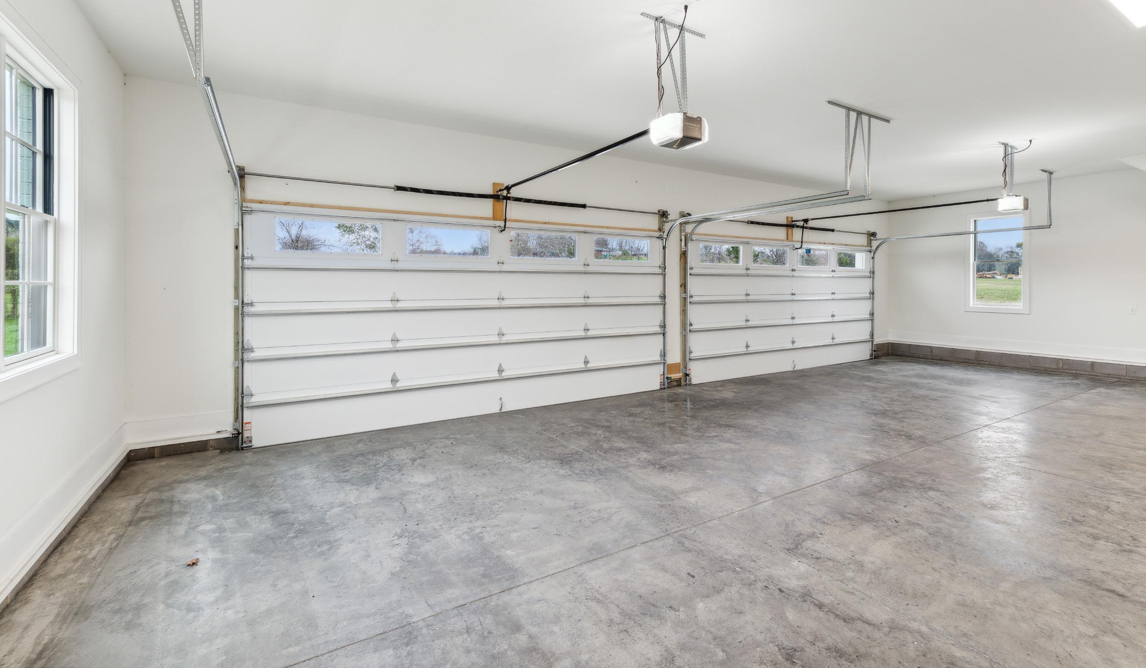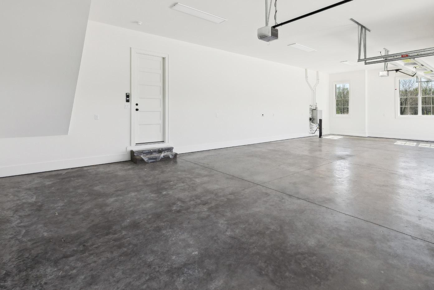 The 4-Car Garage has plenty of room for your vehicles and extra room for a refrigerator, windows for natural light, a tankless water heater, insulated garage doors, and tall ceilings for possible loft storage.