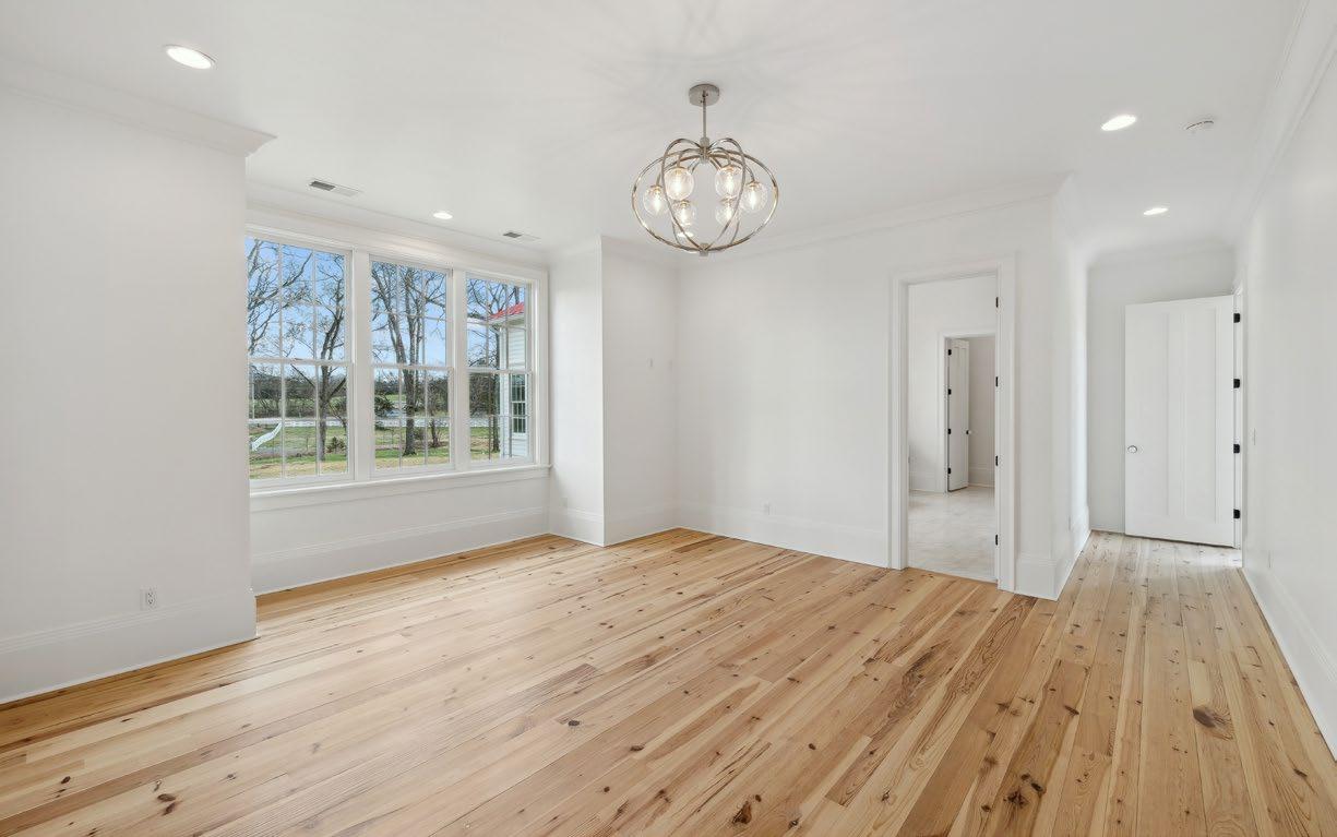 The Music Room also offers an original fireplace, heart-pined floors, and a modern light fixture. This versatile space would make an exceptional billiards or game room, offering guests easy access to the covered porch on the second level. Alternatively, it could be transformed into a ballet studio, office space, or upstairs playroom. How would you envision using this unique and inviting space?