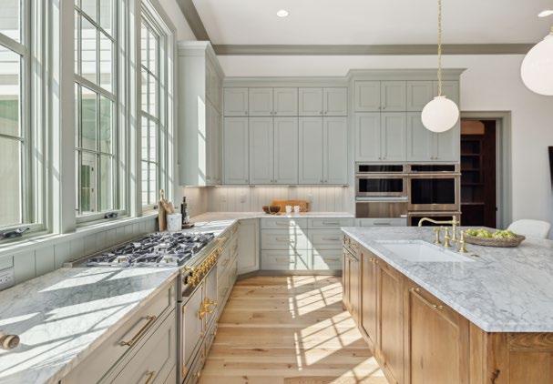 This beautiful kitchen, with plenty of natural light, is the true heart of the home—a space where both style and function effortlessly come together. Modern touches, such as painted cabinetry, a striking stained wood island, and sleek Carrara marble countertops, set the tone, while a vertical shiplap backsplash, adds warmth and character. Thoughtful details, like under-cabinet lighting, crown molding atop soaring ceilings, wood beams, and a corner sink framed by casement windows, create an inviting atmosphere. The walk-in pantry, with custom wood shelving, adds practicality to this culinary haven. Exquisite, high-end appliances—including a 43” five-burner Dual Fuel La Cornue stainless range with brass accents, a 48” ceiling-mounted vent hood with a remote control, a 60” Monogram refrigerator and freezer with front panels and an internal water/ice maker, an Asko panel-ready dishwasher, 30” double wall ovens, a 30” stainless Monogram warming drawer, and a 30” Advant microwave—make this kitchen a chef’s dream. Opening to the breakfast area and family room, it’s the perfect space to entertain loved ones, share meals, and create cherished memories that will last a lifetime.