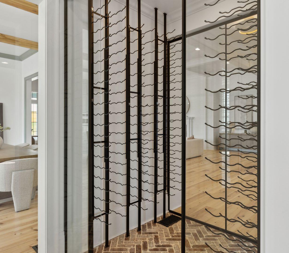Are you a wine connoisseur or an entertaining enthusiast? This stunning two-sided, full-glass wine room, located between the kitchen and dining room, features beautiful brick flooring and offers ample storage for hundreds of bottles of wine.