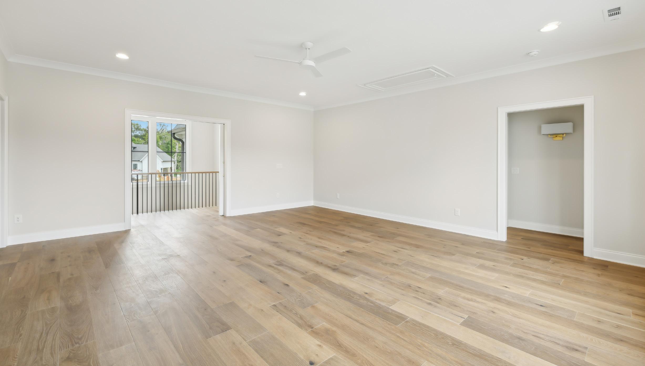 Discover the perfect haven for gathering with friends and family in this spacious Bonus Room. Complete with double barn door entry, a ceiling fan, recessed lighting, and ample natural light, this room offers the perfect cozy place to enjoy family movie night, have a playroom, or visit and converse with your guests.