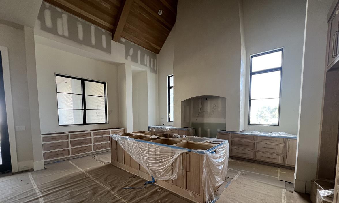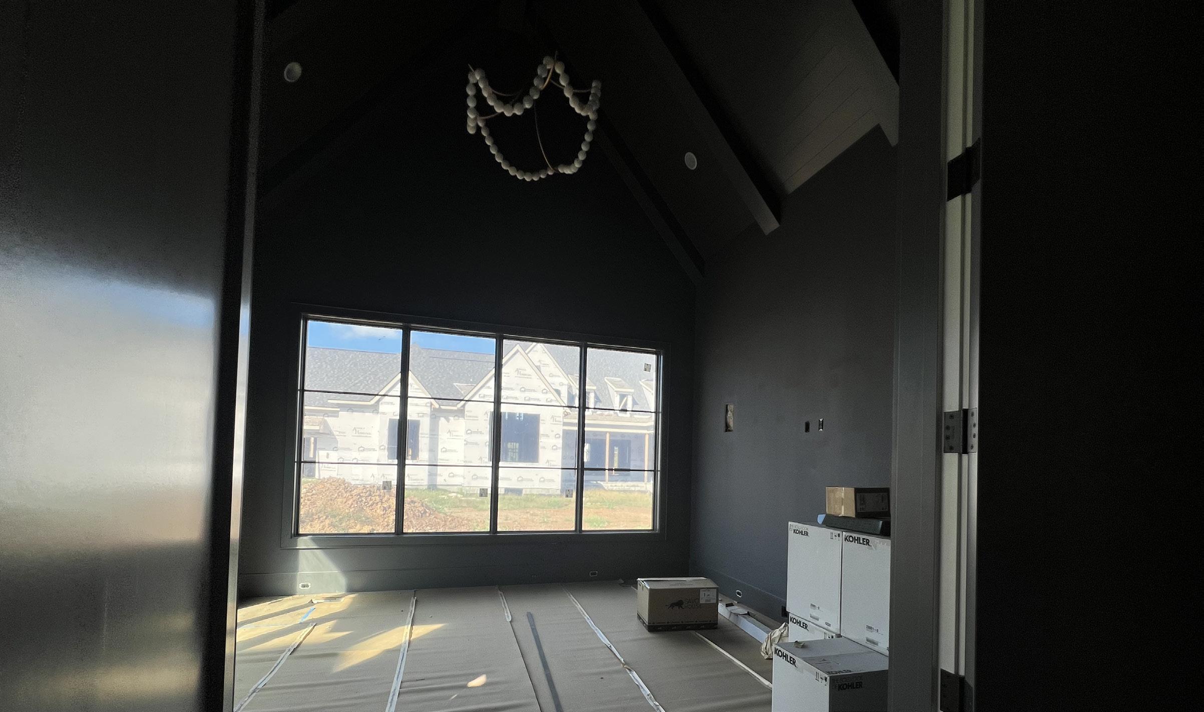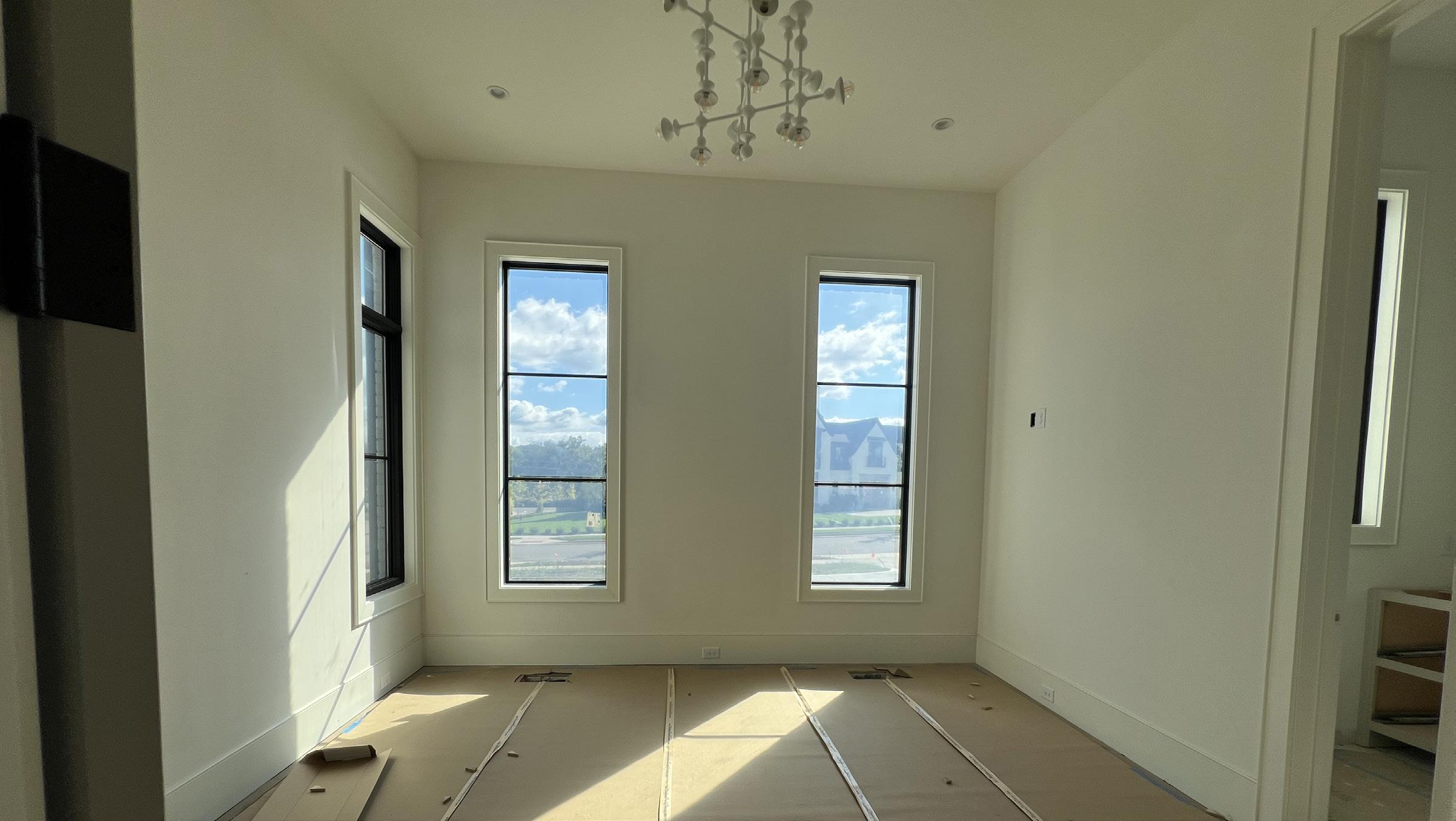 Sophisticated and serene, the study features rich dark plaster walls and ceiling that exude warmth and depth. A striking ArcusStone fireplace anchors the room, offering both character and refinement. Open to the foyer and connected by a hallway to the primary suite, this thoughtfully placed retreat enjoys a wall of windows overlooking the front yard, filling the space with natural light while maintaining an atmosphere of quiet elegance.