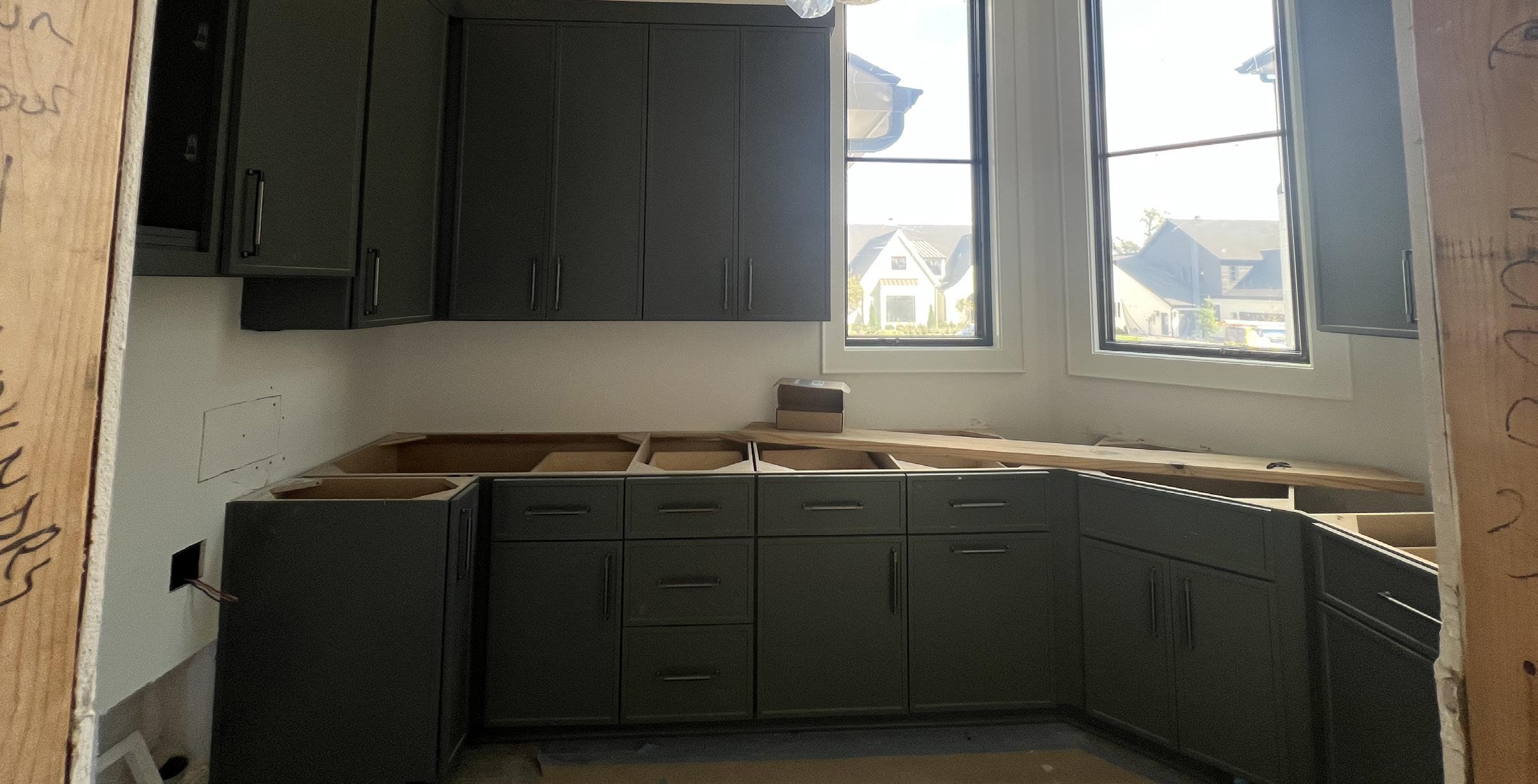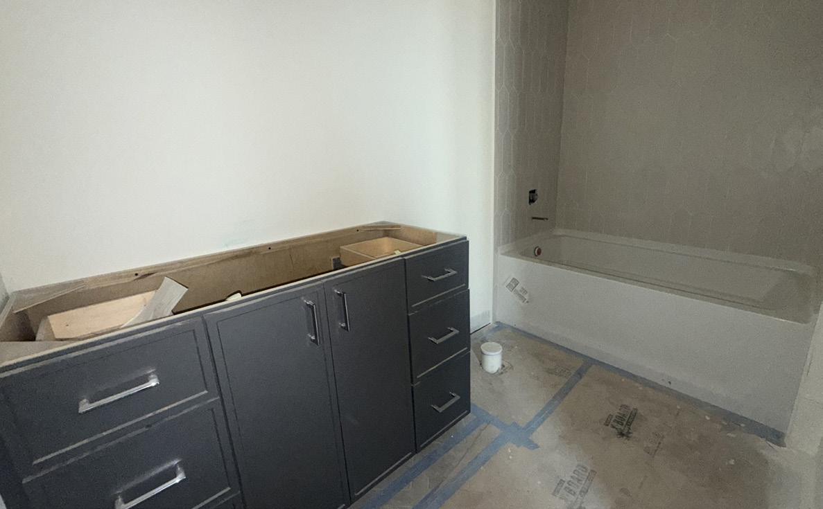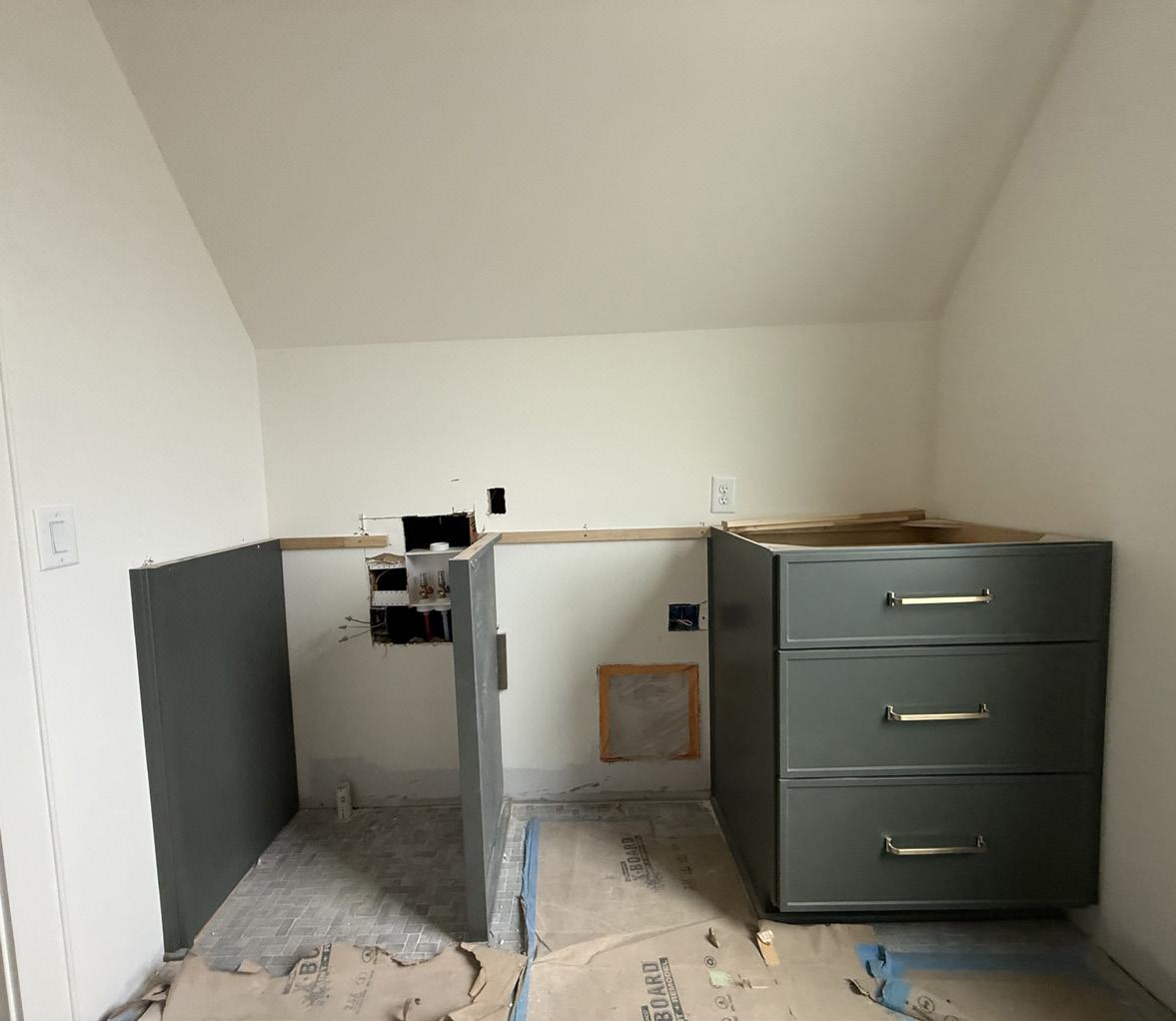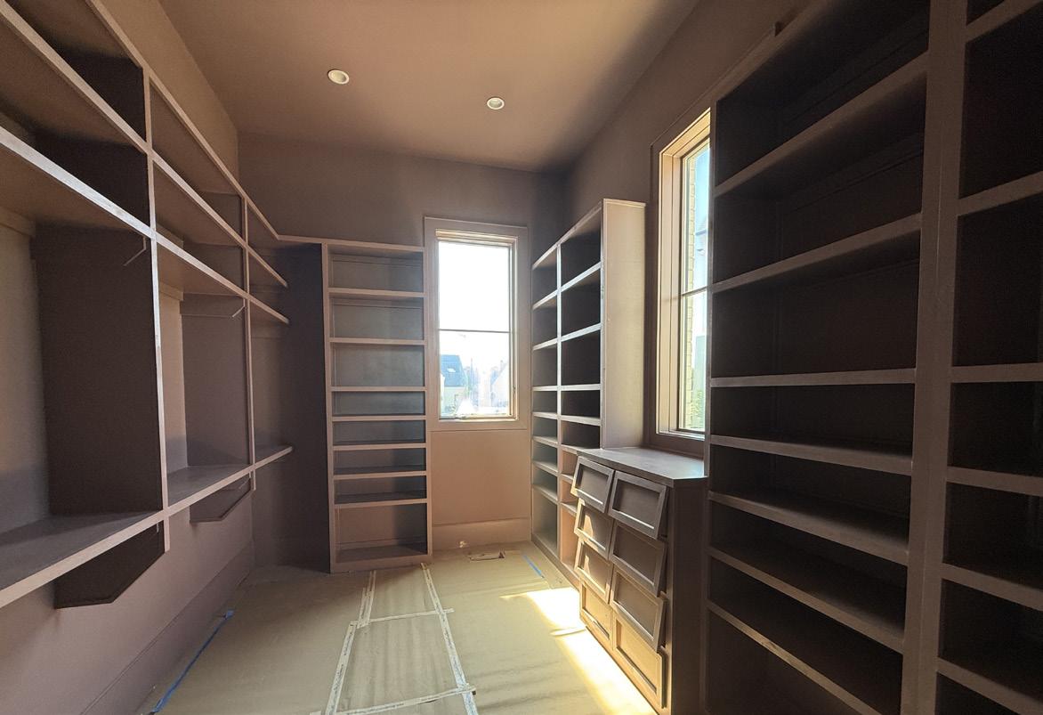 The upstairs laundry mirrors the style and functionality of the main-level laundry in a compact, efficient layout. While it does not include a sink, it features deep storage drawers and ample countertop space, providing a convenient and organized space for everyday laundry tasks.