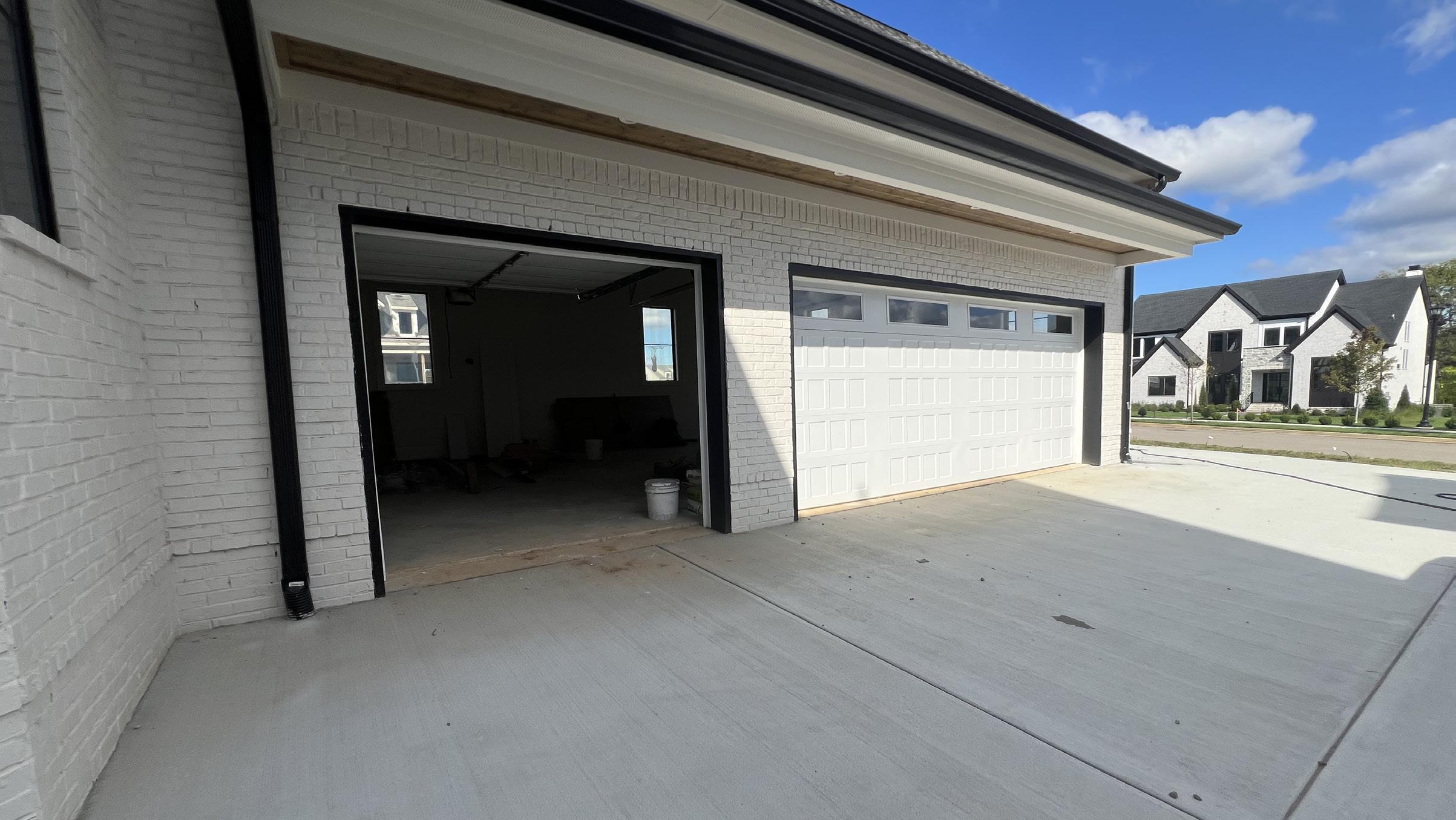The home features a spacious four-car garage, including a three-car bay and a separate single bay, all equipped with insulated doors for comfort and efficiency. The single bay offers convenient access to the bonus room above, adding flexibility for storage or additional living space. A covered porte-cochère provides a grand and sheltered entry, combining functionality with refined curb appeal.