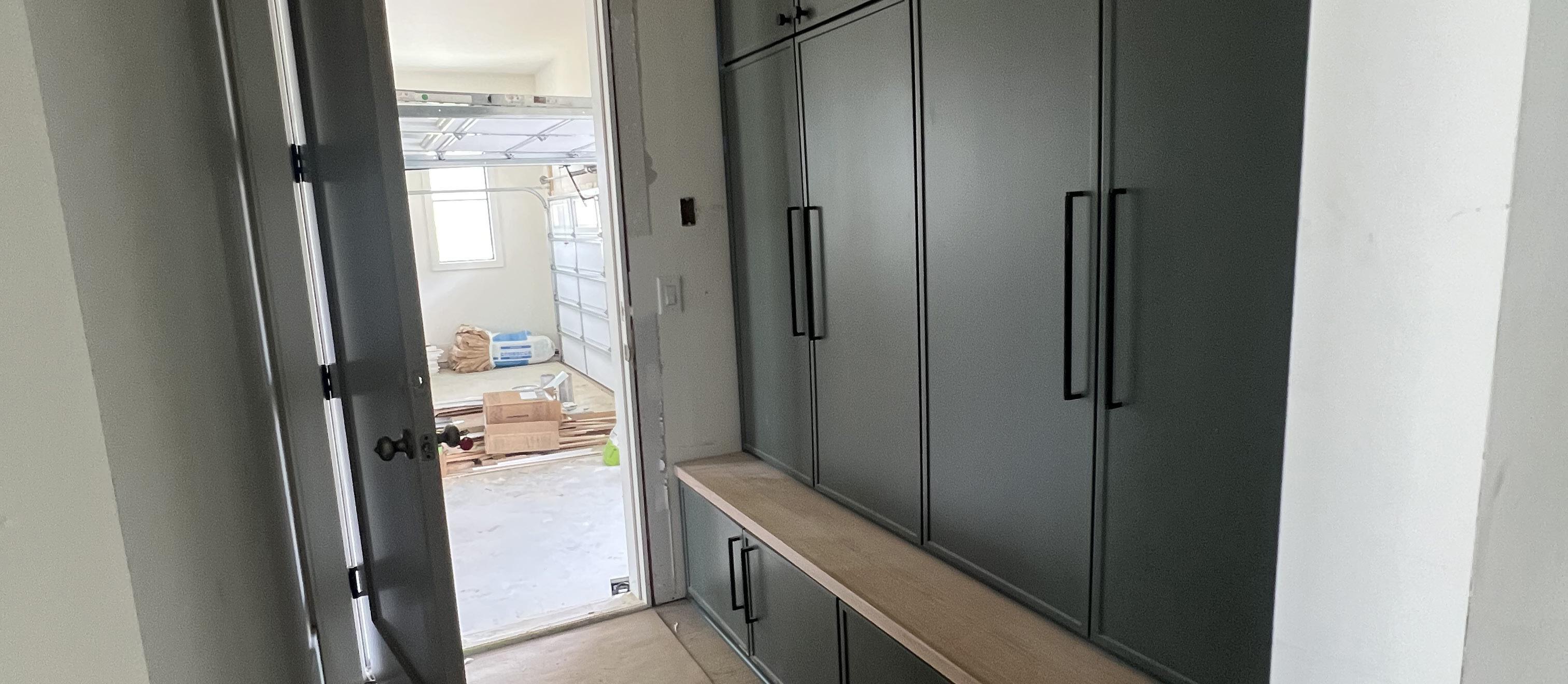 Conveniently located just steps from the garage, the laundry room combines functionality with thoughtful design. Built-in cubbies provide organized storage, while a deep sink and soft-close doors and drawers enhance everyday usability. Mosaic tile floors with a drain offer both style and practicality, making this space functional and efficient.