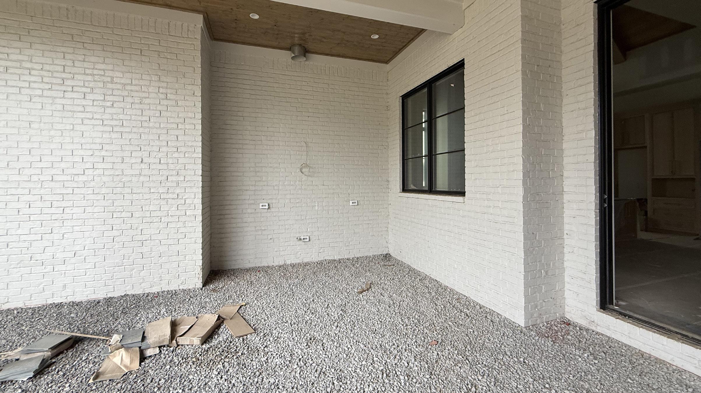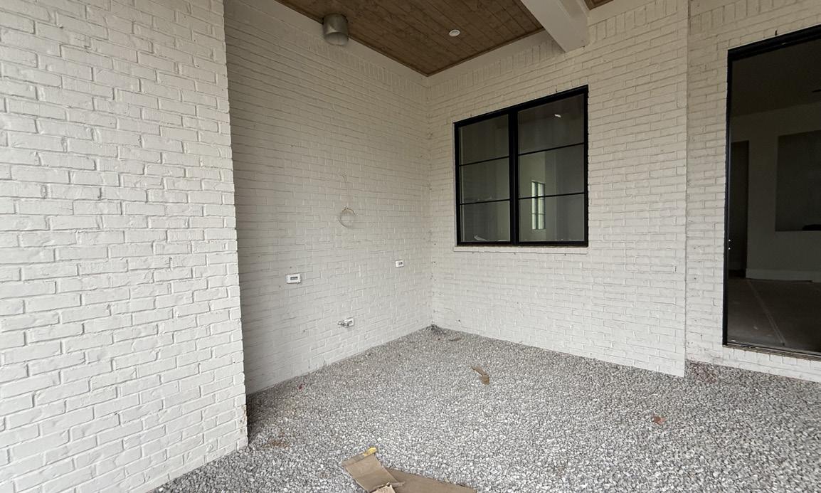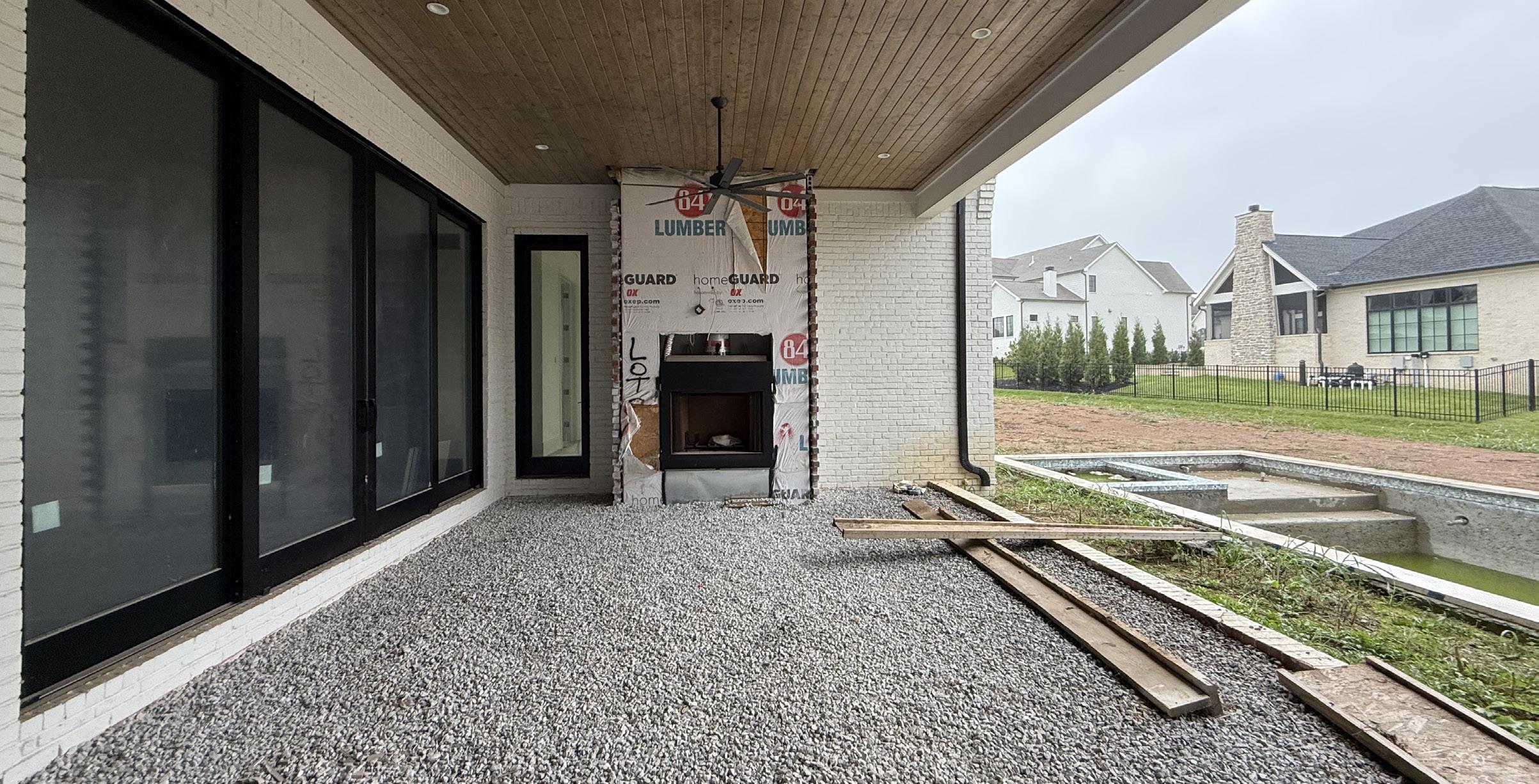 Expansive and inviting, the covered porch wraps seamlessly from the family room to the media room, offering a perfect blend of indoor-outdoor living. A built-in fireplace creates a cozy focal point, while the paneled, wood-stained ceiling with recessed lighting and ceiling fans adds warmth and architectural interest.
