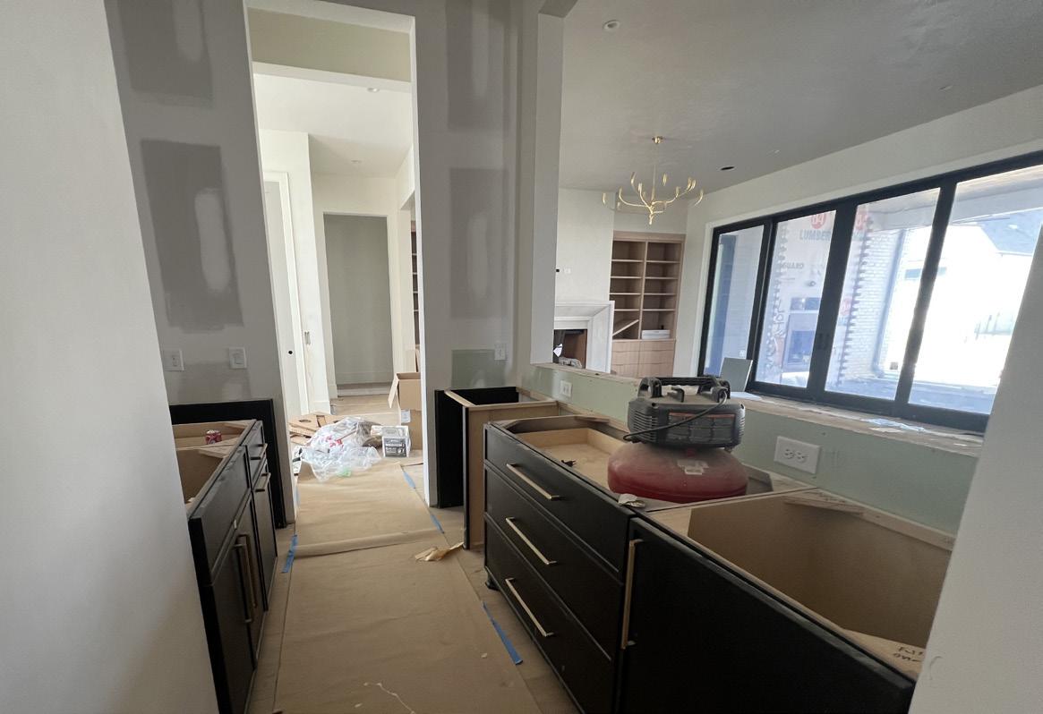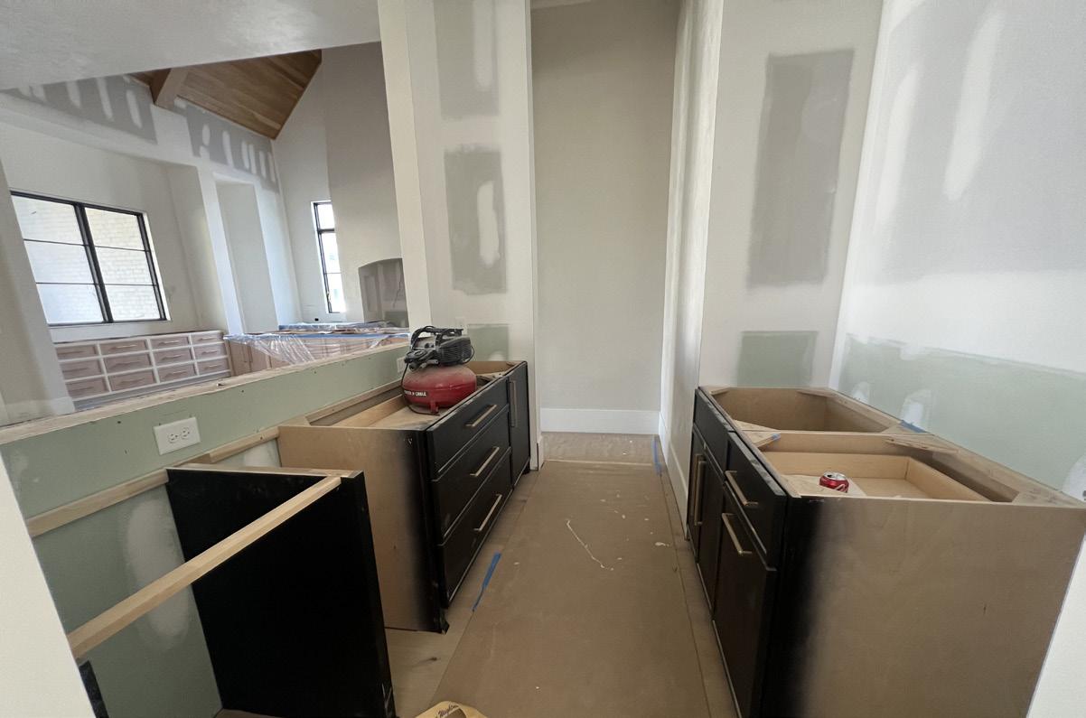 • Walk-behind / walk-through entertainer’s bar with ice maker, mini fridge, and wine cooler