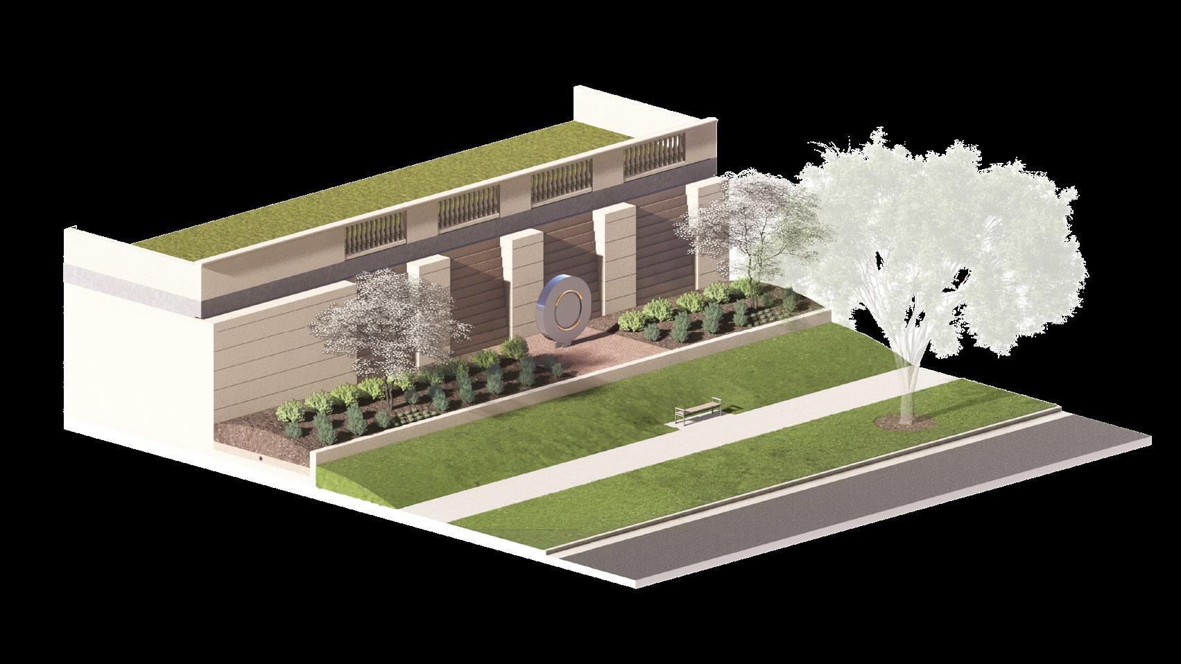 Previously hosting a brutalist-style water feature, this building facade in south Charlotte is now nonfunctional, prompting the owner to seek a design that complements the building’s refined, high-design environment. The proposed update includes a public art installation, a 4-foot-deep planting bed, a widened sidewalk for enhanced accessibility, and an mmcité bench for added comfort. This redesign aims to create a more cohesive and aesthetically pleasing space that integrates seamlessly with its surroundings.