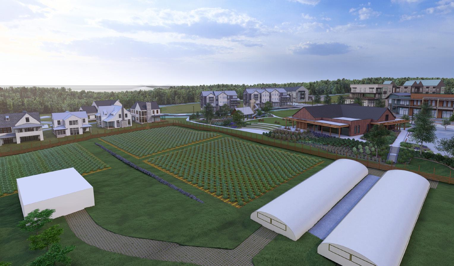The River District in Charlotte is an exciting mixed-use development with a vibrant educational farm at its heart. This dynamic farm boasts three working fields, two greenhouses that serve as interactive classrooms, market stalls lining the parking area, a welcoming community hub, and a state-of-the-art playground. It’s a lively gathering spot where learning, community, and fun come together in an inspiring, nature-driven environment community building fields and greenhouses
