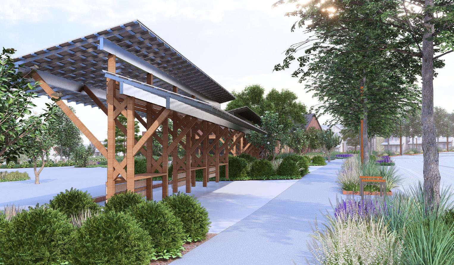 The Nexus Redesign of UGA’s Innovation District improves connectivity between North Campus and downtown Athens, enhancing walkability and access. Key features include pedestrian-friendly paths, a bridge inspired by Athens’ historic ‘Murmur Trestle,’ and outdoor spaces with seating and innovative stormwater management. The design incorporates green infrastructure and aligns with UGA’s aesthetic, creating functional and collaborative spaces for learning and innovation.