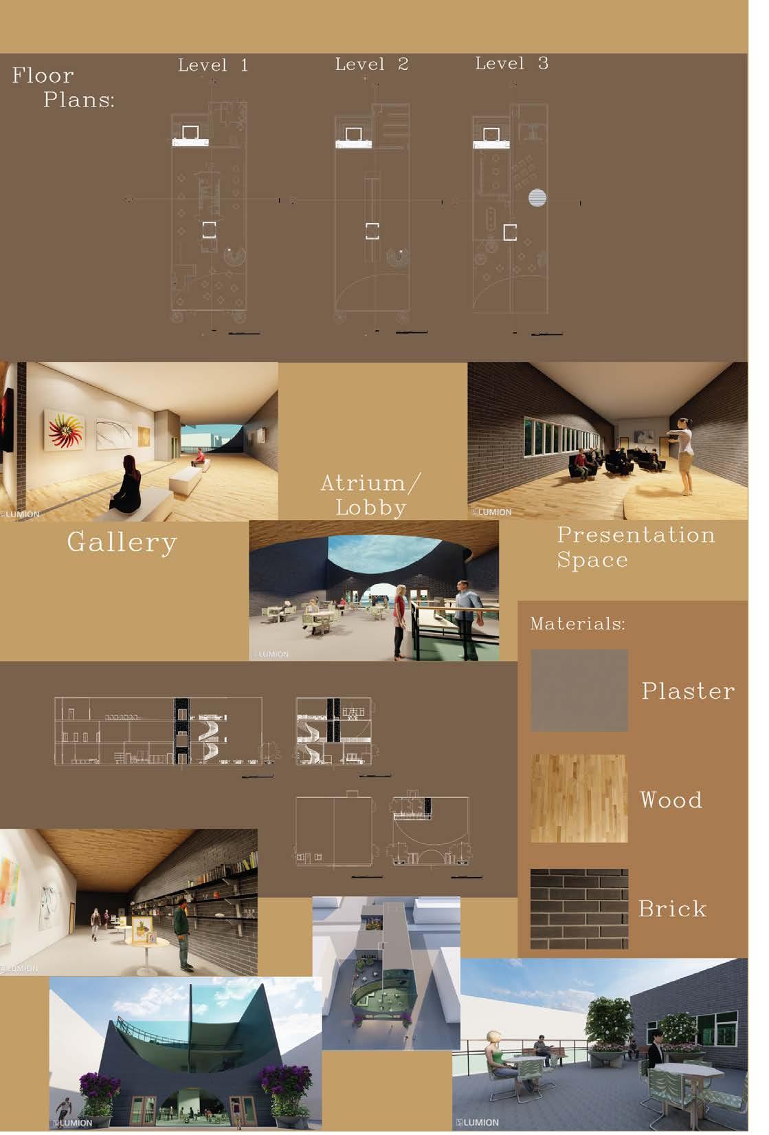 The Museum of Modern Photograhpy is an urban infill project. The idea was to select a spot in a city that was empty space, and to design a museum that would add culture to the environment it was placed in to infill the empty space. I designed my museum with themes of circles and glass to reflect a camera lense, and the interior program was fully determined by me as part of the project.