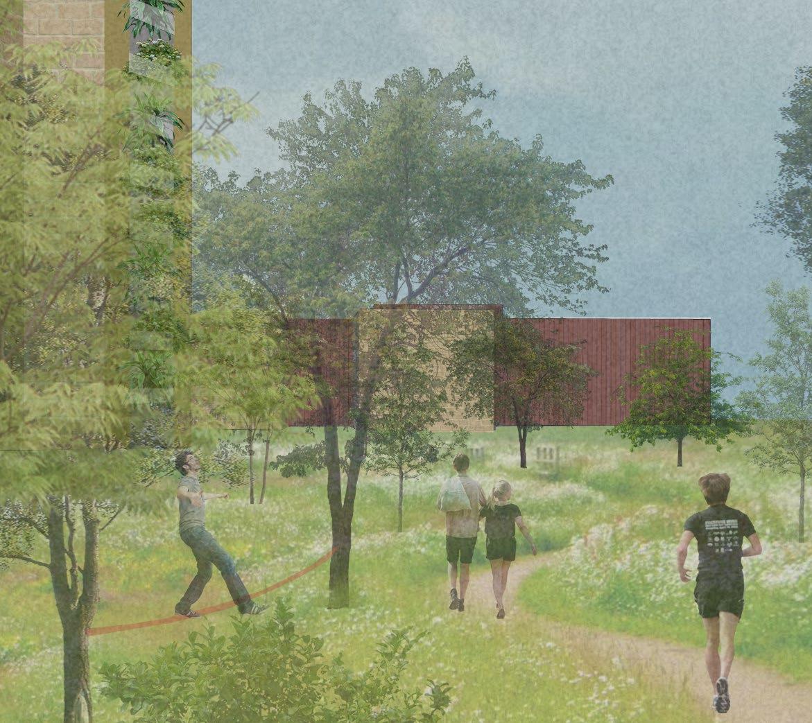 For å gjere friluftsliv og fysisk aktivitet lett tilgjengeleg, samt auke det økologiske mangfalded i byen, etablerer vi eit samanhengande grøntdrag som forbinder parkar og marka med kvarandre. Der veger blir ein barriere vil det byggast grøne bruer over slik at det skal vere mogleg å røyra seg uforstyrra gjennom heile beltet. I møte mellom fotgjengar og bilist, vil fotgjengar ha førsterett. Disse korridorane vil vere omringa av bustadar som vil auke tryggleiken for dei som bruker areala på kveldstid.