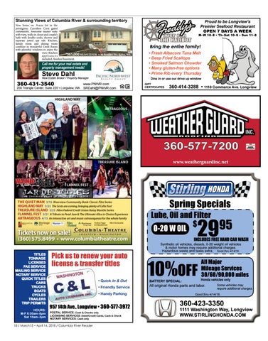 957 14th Ave., Longview • 360-577-3972 POSTAL SERVICE: Cash & Checks only LICENSING SERVICES: Debit/Credit Cards, Cash & Check NOTARY SERVICES: Cash only