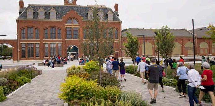The Pullman National Historical Park is an architectural treasure of Chicago’s South Side. Building off of the 2015 Positioning Pullman vision, the Pullman National Historical Park Visitor Center and grounds rehabilitated the historic and iconic Pullman administrative building and factory grounds into a vibrant new public space. The site design features an interpretative landscape within The Front Lawn, an interpretive corridor in the historic rail Transfer Pit, where hardscape and planting palettes are designed around archaeological relics, and The Park, a flexible event and gathering space built around the historic footprint of the rear-erecting shops.