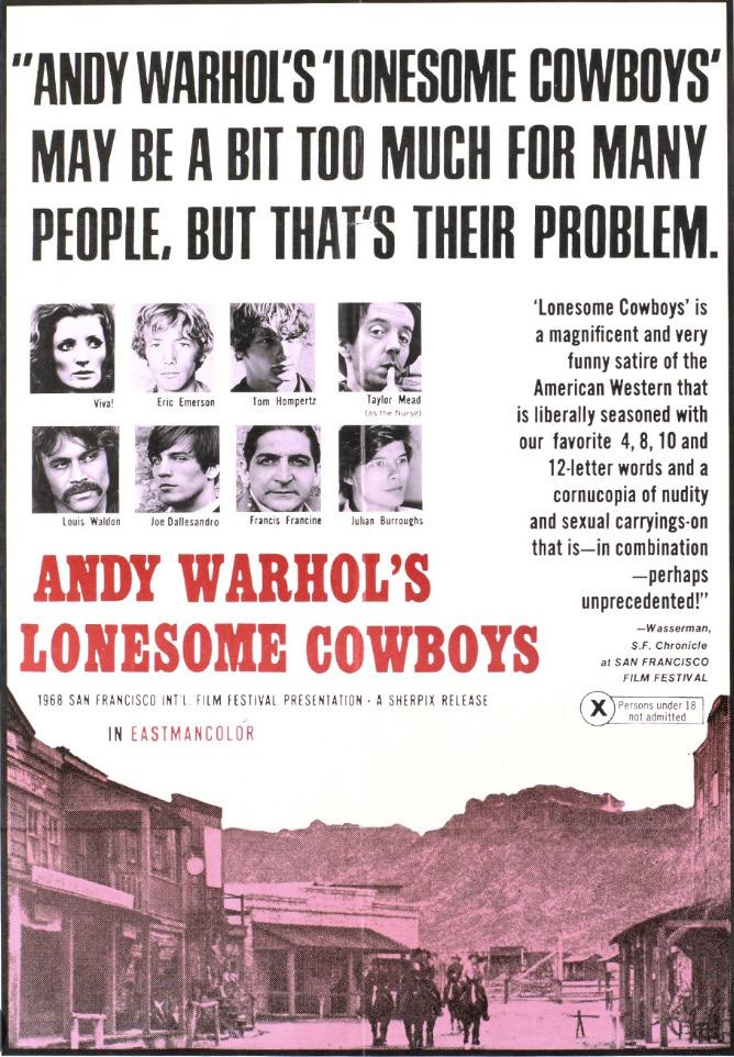 Left: Poster for Warhol’s 1968 film Lonesome Cowboys