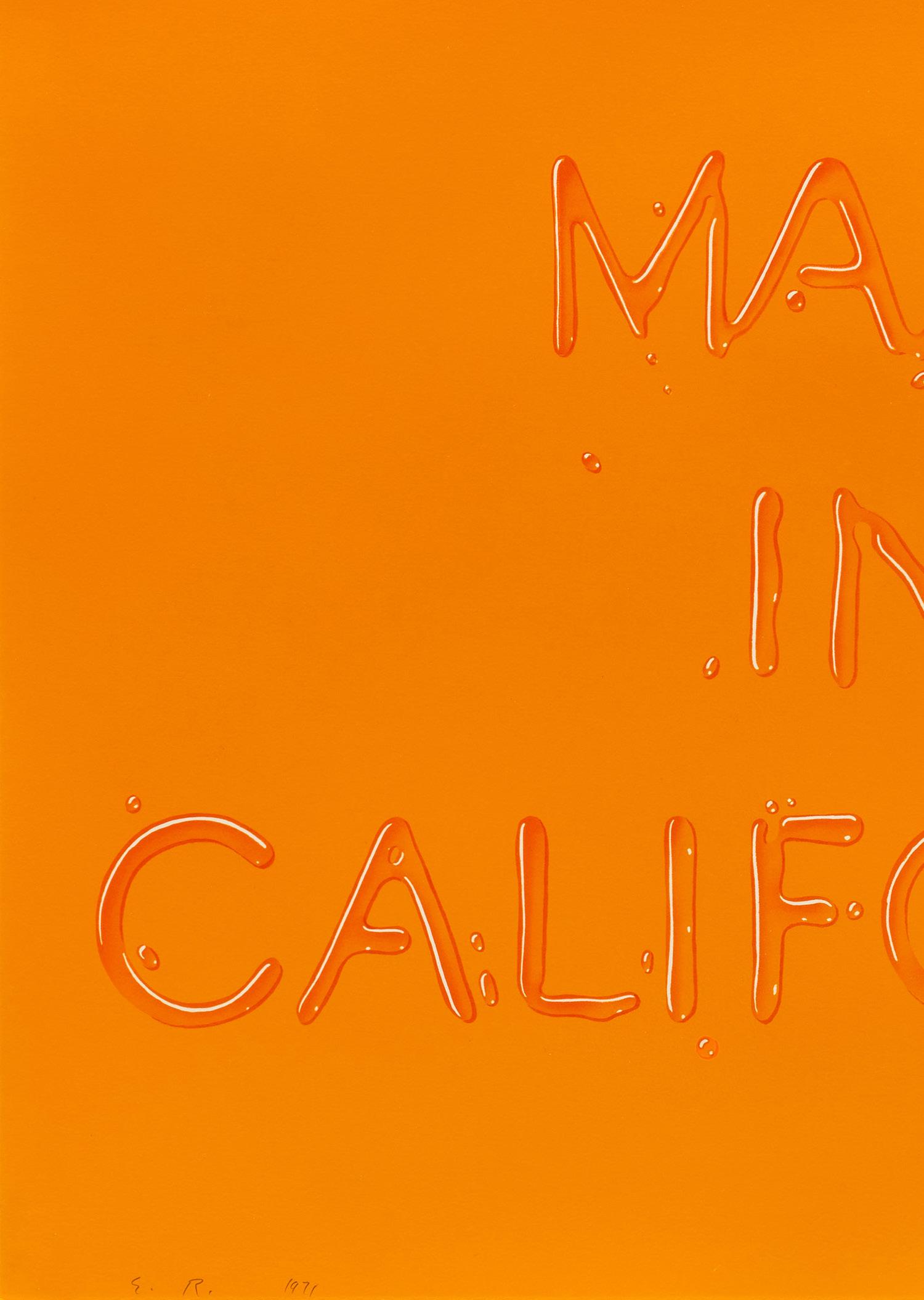 When Edward Ruscha arrived in Los Angeles, California, in 1958, the Golden Age of Hollywood was coming to an end. The Supreme Court’s 1948 ruling in United States v. Paramount Pictures, Inc. had dismantled Hollywood’s centralized system of film production, ending the dominance of major studios such as Paramount Pictures, Warner Brothers, and 20th Century Fox. A “New Hollywood” emerged in its wake. Characterized by the rise of independent, experimental filmmaking, the Hollywood of the late 1960s rejected the thematic conventions of classic cinema in favor of critical confrontations with the realities of contemporary life.