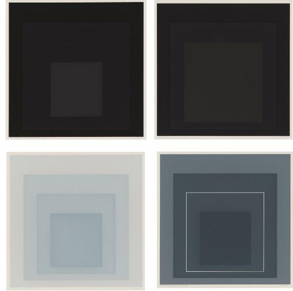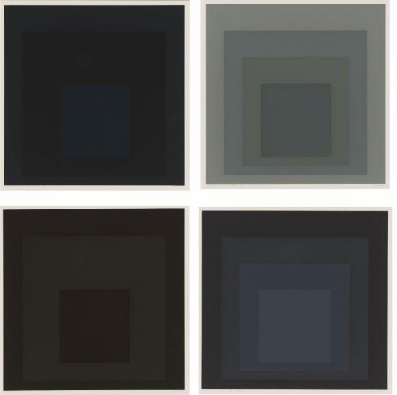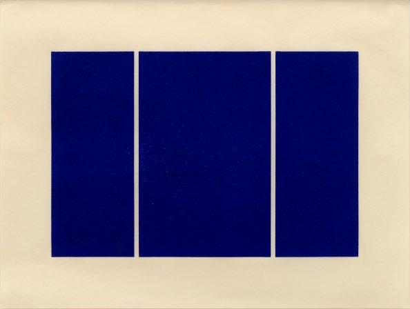 The blues, however, behave differently. The deep blue acrylic Judd used in sculptures produced an optical depth that was difficult for the eye to parse. In the prints, where we have the opportunity to look at the same design in different colors, we can see how the blue end of the spectrum is a place of optical complication, of twilights and uncertainty, even within a neatly bounded form.
